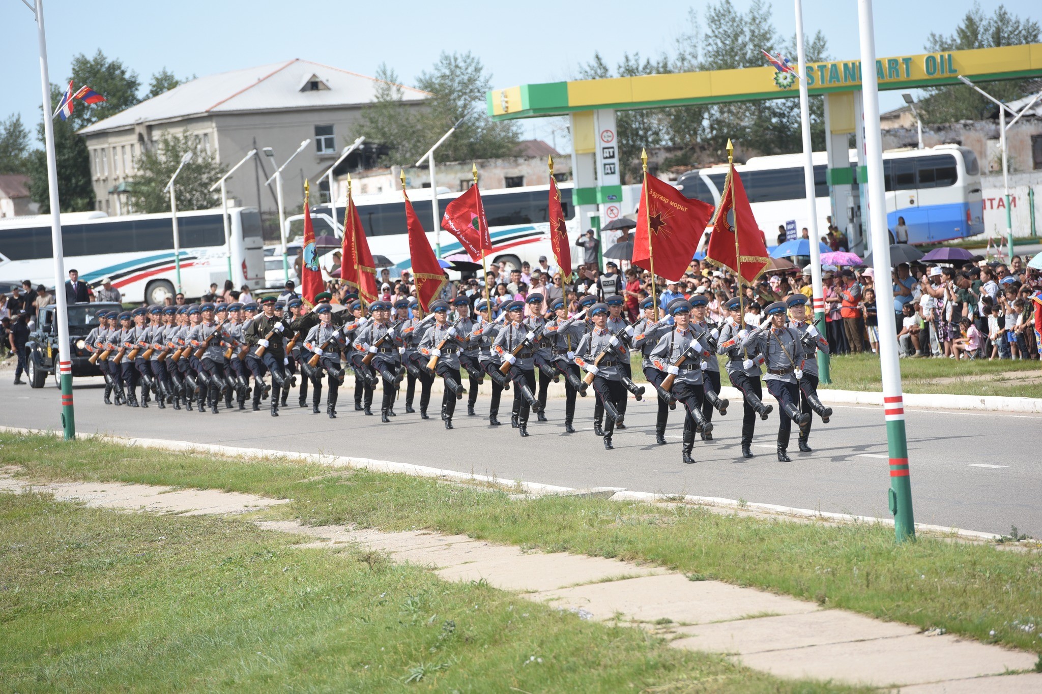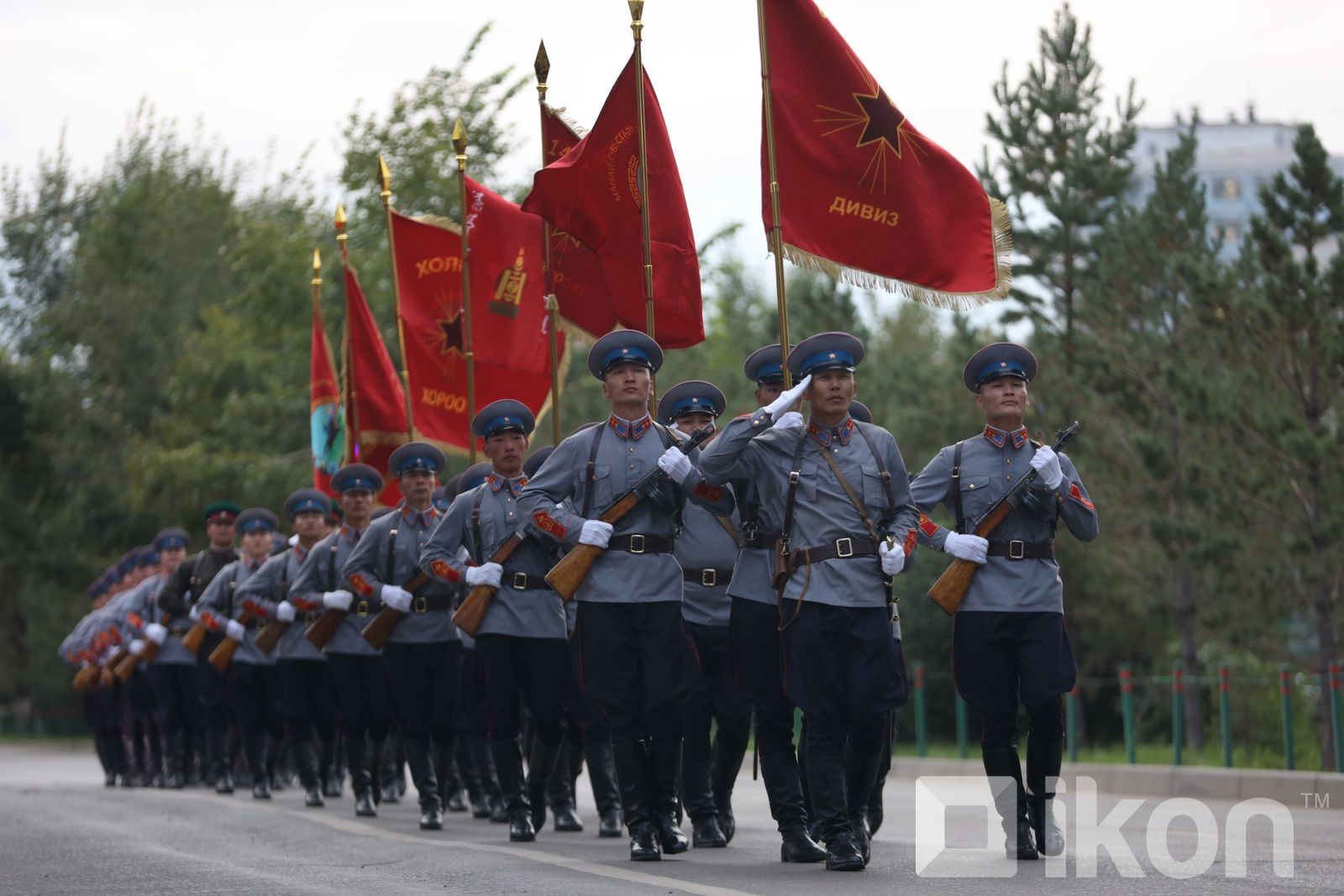 Жагсаалын хамгийн урд яваа МАХЦ-ийн 6 дугаар морьт дивизийн тугийн чиглүүлэгчээр Зэвсэгт хүчний 016 дугаар нэгтгэлийн Мотобуудлагын батальоны захирагчийн нэгдүгээр орлогч, штабын дарга, цэрэгжлийн спортын мастер, ахмад Бархасын Ариунболд алхсан юм.