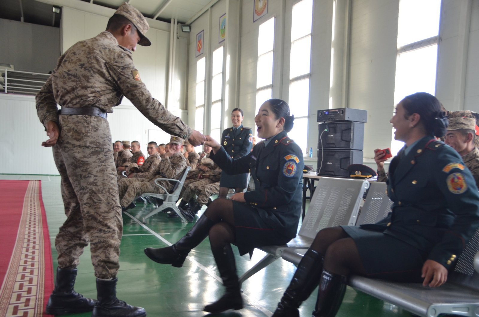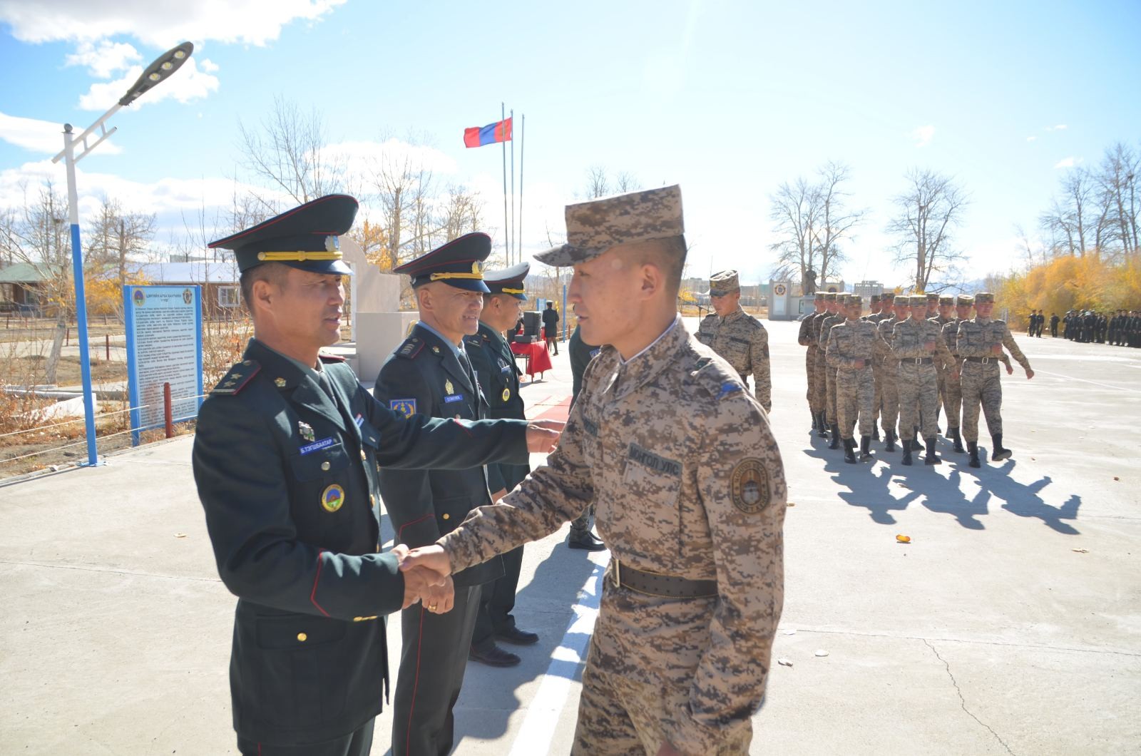 Ангийн захирагч хурандаа Х.Энхболд “Монгол Улсын иргэн бүр эх орноо батлан хамгаалах, аюулгүй байдлыг сахин хамгаалах эрхэм үүрэгтэй билээ. Дайчин замнал түүхтэй ангид алба хаах чин хүсэл эрмэлзэлдээ хөтлөгдөн ирсэн цаг хугацаа саяхан мэт санагдаж байна. Эх орондоо өргөсөн тангарагтаа үнэнч байж, эр цэргийн албанд шамдан боловсорч, цэргийн эрдэмд суралцсан та бүхнээр бид бахархаж байна. Сурлага, сахилгаараа үлгэр жишээ байж, эх орондоо өргөсөн тангарагтаа үнэнчээр зүтгэсэн эрхэм дайчдаар аав, ээж, ахан дүүс, нутгийн зон олон нь бахархаж, хүндэтгэлтэйгээр угтан авна гэдэг эргэлзэхгүй байна. Эрхэм дайчдыг ангийн Байлдааны туг өнө мөнхөд ивээж байх болтугай” гэсэн юм.