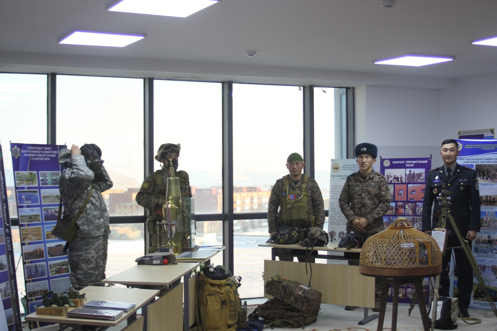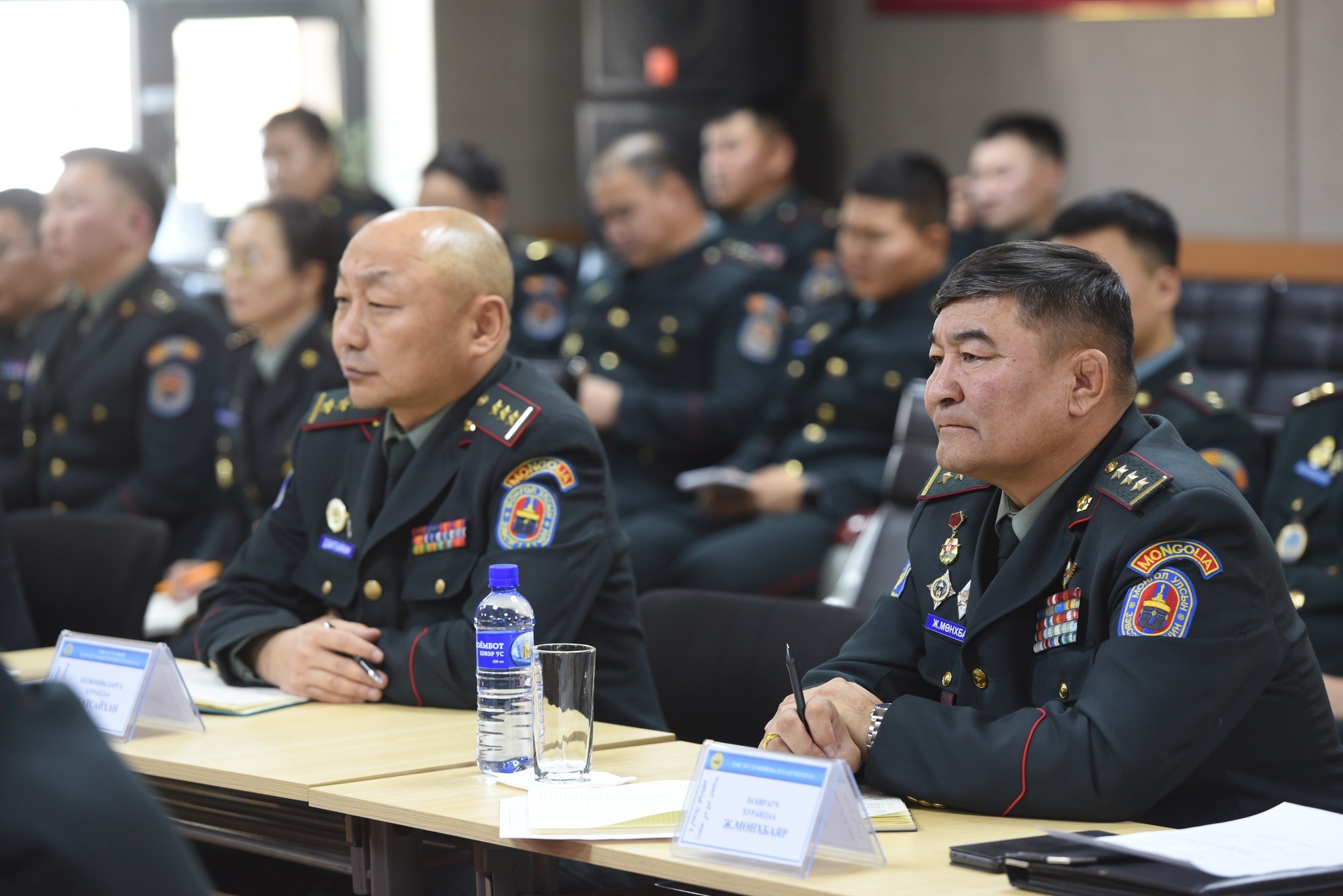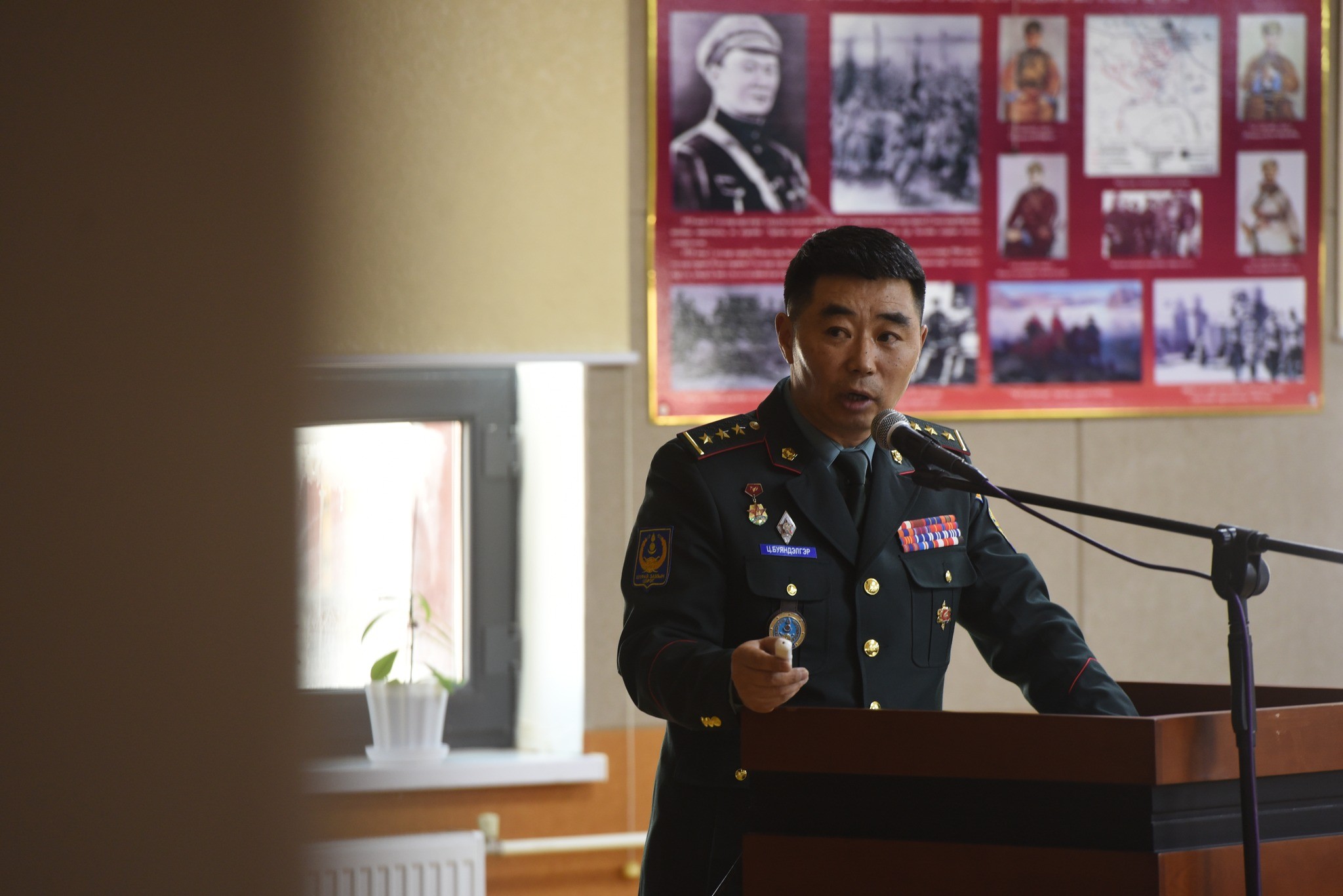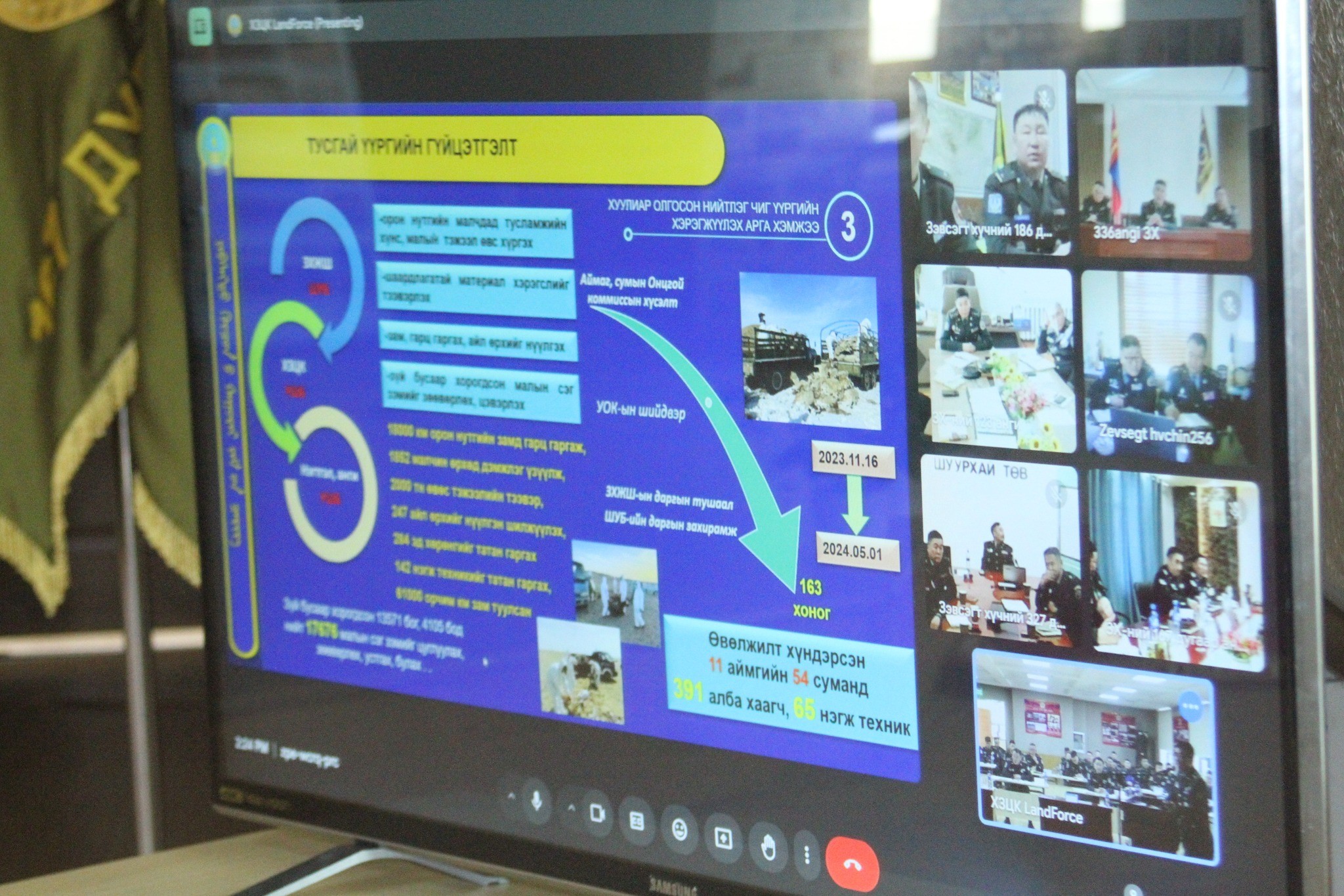 Мөн ОХУ, БНХАУ, АНУ-ын Зэвсэгт хүчин, Япон Улсын Өөрийгөө хамгаалах хүчинтэй хамтарсан сургуулиудын онцлог, ач холбогдол, алба хаагчдын оролцооны талаар тодотгож, Хуурай замын цэргийн нэгдсэн тактикийн хээрийн сургууль, “Ахлагчийн хөгжлийн төв”-ийг түшиглэсэн сургалтууд болон салааны захирагч нарын мэргэшүүлэх сургалт, “Оюутан цэрэг-2024”-д гүйцэтгэсэн үүрэг, цас зуд, гамшиг ослын үед ард иргэддээ үзүүлсэн тусламж, тэсэрч дэлбэрэх зүйлийг аюулгүй болгосон тоо баримт, ургац хураалтад манлайлан оролцсон талаараа ч илтгэлээ. Илтгэлийнхээ төгсгөлд бүтээлч ажлаар хоёр жилийн хугацаатайгаар хэрэгжсэн “Ногоон хөгжил-Эко орчин” төсөл, Зэвсэгт хүчний 119, 234, 336 дугаар ангиудын алба хаах орчин нөхцөлийг дээшлүүлсэн “Зам” төсөл, Хөвсгөл нуурыг цэвэрлэж, живсэн машин техникийг татан гаргах ажлыг дөрвөн жилийн хугацаанд гүйцэтгэсэн Зэвсэгт хүчний 186, 234 дүгээр ангийн бүтээлч ажил, хадгалалтаас ашиглалт руу шилжүүлсэн зэвсэглэл техникийн засвар шинэчлэл болоод БХЯ, ЗХЖШ-ын дэмжлэгтэй шинэчлэгдсэн цэргийн байр, гал тогооны барилга зэрэг бүтээн байгуулалтыг нэрлэлээ.