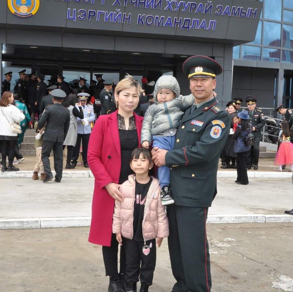 Нээрээ манай Зэвсэгт хүчний бэр Д.Туул багш ханьтайгаа ханилан суугаад 18 жил болж байгаа тэд хоёр хүүхэдтэй. Охин О.Амин-Эрдэнэ хоёрдугаар анги, хүү О.Мөнх-Эрдэнэ дөрвөн настай. Цаг наргүй тушаалаар явдаг цэргийн алба хаагч, мөн багшийн хүүхдүүд болоод ч тэр үү хүүхдүүд нь биеэ даах чадвартай болчихсон, охин нь аав, ээжийгээ хүлээхгүйгээр дүүгээ цэцэрлэгээс нь аваад, гэрийнхээ тоосыг соруулчихдаг гэж байна. Мөн тэрээр ханийнхаа тухай өгүүлэхдээ “Миний хань хилийн застав дээр төрсөн хүн л дээ. Хадам аав, ээж минь насаараа эх орныхоо торгон хилийг тойрч амьдарсан хүмүүс. Аав минь бэлтгэл хошууч цолтой” хэмээн тодотгож, ханийгаа энхийг сахиулах ажиллагаанд оролцсон, ажил албандаа чин сэтгэлээ зориулдаг болохыг ч бахархалтайгаар өгүүлж байсан юм. Ийнхүү Зэвсэгт хүчний бэр болсон бага багшийн нэг өдөртэй төсөрхөн танилцаж, сурагчид ч сурвалжлагч намайг “Багш аа” хэмээн дуудаж байснаараа “Баяртай багш аа” гэсээр хоцорлоо.