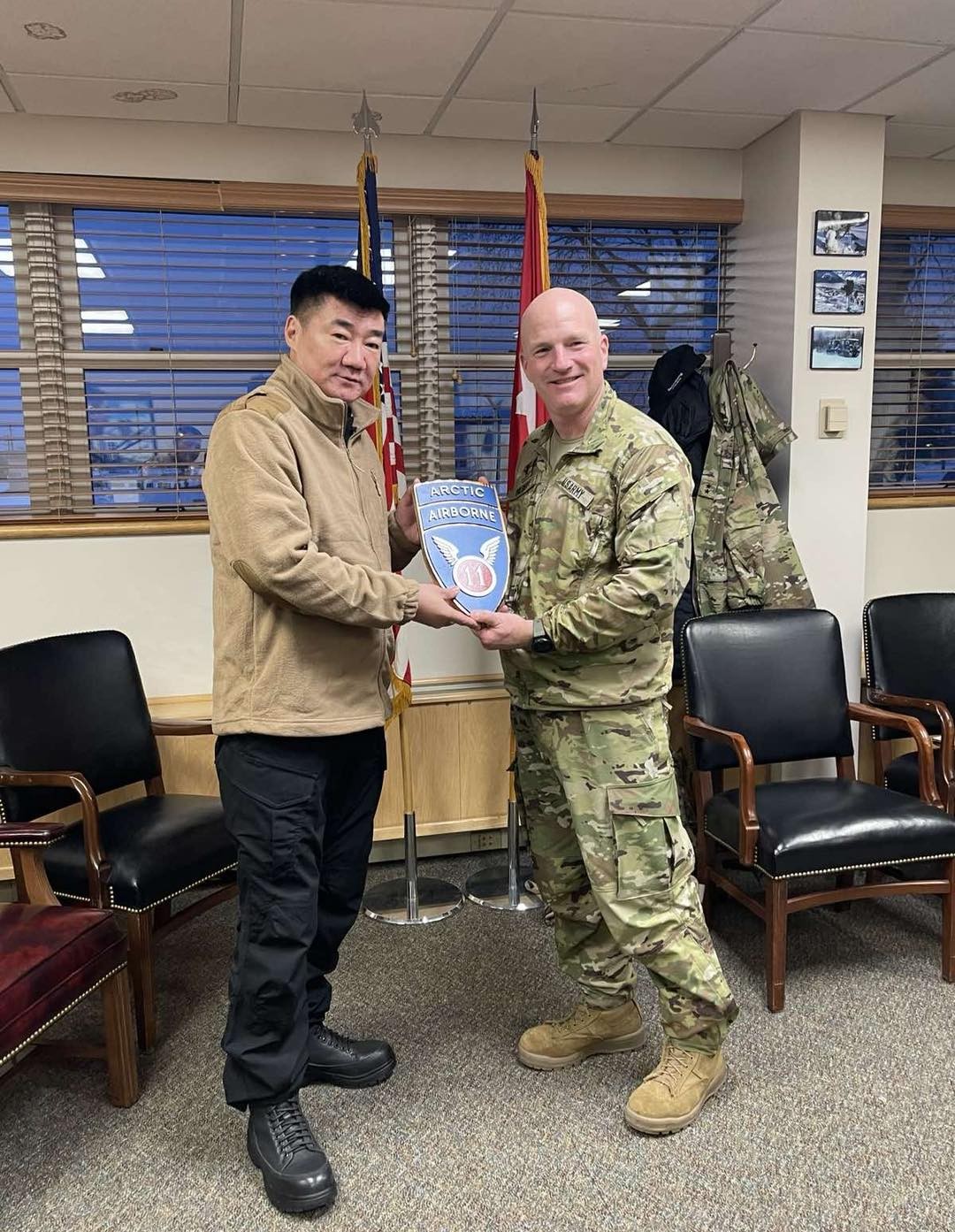 Айлчлалын үеэр Батлан хамгаалахын сайд С.Бямбацогт АНУ-ын Энэтхэг-Номхон далайн Хуурай замын цэрэгтэй хамтарсан сургуульд Монгол Улсын Зэвсэгт хүчний оролцоог салаанаас рот болгон нэмэгдүүлэх талаар санал солилцож, энхийг сахиулах ажиллагаанд шаардлагатай зэвсэг техникийг тусламжаар авч, Бүгд Найрамдах Өмнөд Судан Улсад үүрэг гүйцэтгэж буй газар оронд хүргэх асуудлыг шийдвэрлэлээ. Мөн АНУ-д сургах цэргийн албан хаагчдын тоог нэмэгдүүлэх, Аляскийн их сургуульд энгийн иргэдийг америкийн иргэдийн нэгэн адил хөнгөлөлттэй нөхцөлөөр сургах боломж байгаа талаар АНУ-ын талтай санал солилцов.