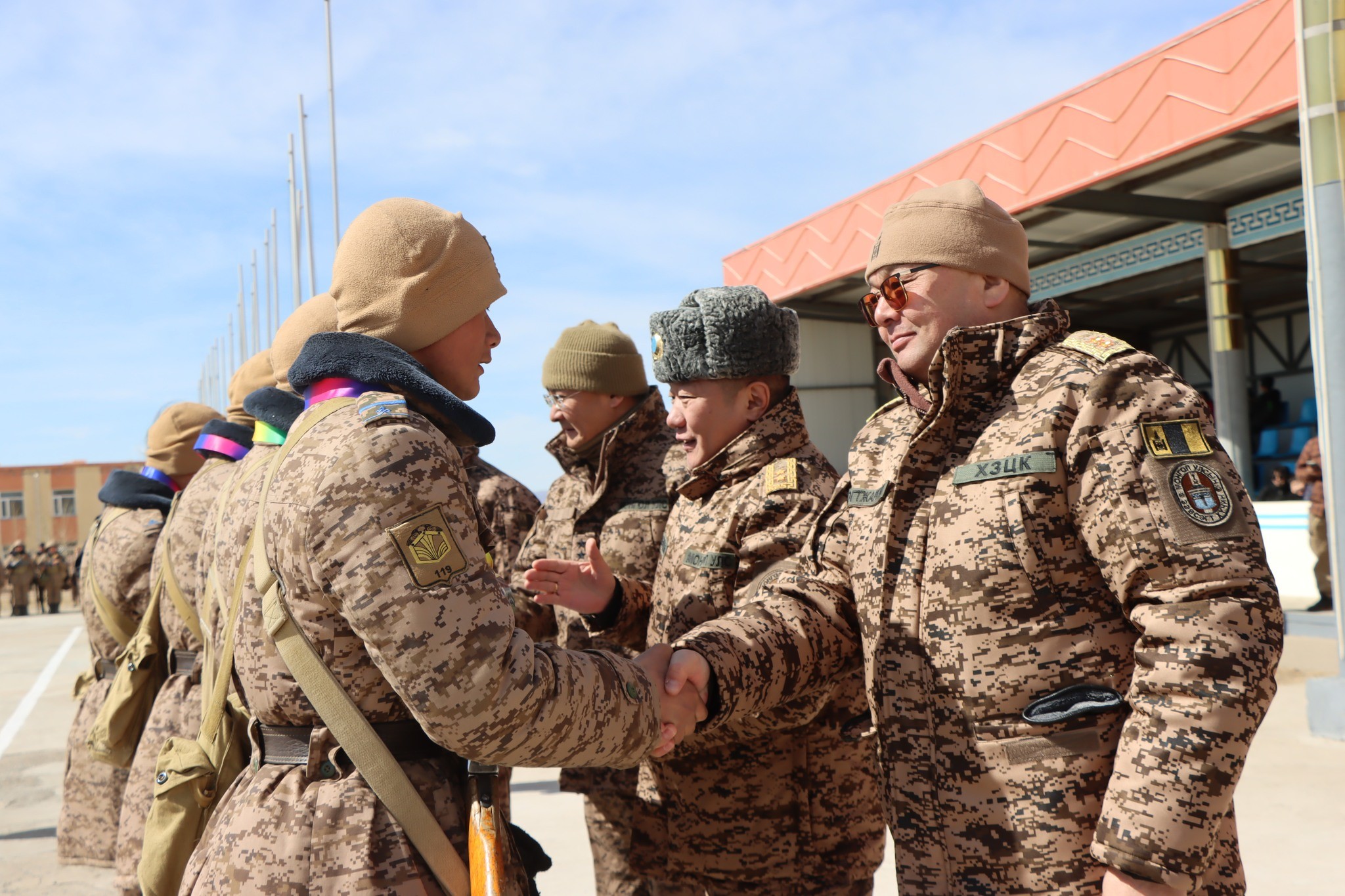 Арга хэмжээний үеэр “Монгол цэргийн өдөр”-ийг тохиолдуулан Монгол Улсын Ерөнхийлөгчийн зарлигаар шагнагдсан зарим алба хаагчийн шагналыг хээрийн байрлалд гардуулж, хамт олных нь өмнө баяр хүргэлээ. Монгол Улсын Ерөнхийлөгчийн зарлигаар “Цэргийн гавьяаны Улаан тугийн одон”-гоор Зэвсэгт хүчний 256 дугаар ангийн захирагч хурандаа М.Дэлгэрсайхан, “Цэргийн хүндэт медаль”-аар Зэвсэгт хүчний 336 дугаар ангийн захирагч хурандаа Н.Гүрбадам, ХЗЦК-ын Удирдлагын байрны авто техникийн тасгийн жолооч ахлах ахлагч Э.Мөнхбаатар нар, Батлан хамгаалахын сайдын тушаалаар “Дайчин алдар III” медалиар тус командлалын Удирдлага төлөвлөлтийн хэлтсийн удирдлага, төлөвлөлтийн офицер дэд хурандаа Д.Ганхүү, Материал техникийн хэлтсийн орон сууцны офицер ахлах дэслэгч Н.Хосбаяр нар, ЗХЖШ-ын “Жуух бичиг”-ээр тус командлалын Удирдлагын байрны авто техникийн тасгийн жолооч сургагч ахлагч Д.Энхтайван нар тус тус шагнагдав.