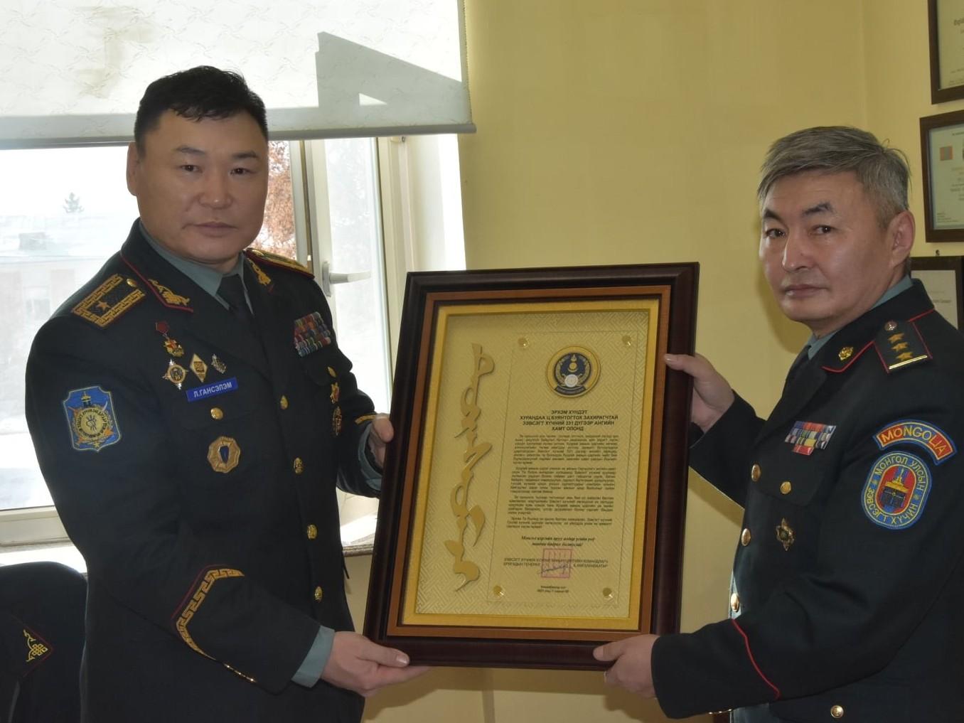 УИХ-аар 2020 онд Зэвсэгт хүчний тухай хуульд нэмэлт өөрчлөлт орсонтой холбогдуулан Зэвсэгт хүчний бүтцэд шинээр байгуулагдсан Тусгай хүчний цэргийн командлал, Барилга-инженерийн цэргийн удирдах газарт Хуурай замын цэргийн командлалаас шилжсэн дээрх ангиудын удирдлага, хамт олонд талархал илгээснийг 2021 оны 1 дүгээр сарын 29-ний өдөр тус командлалын Захиргааны удирдлагын хэлтсийн дарга, хурандаа Л.Ганбаатар нарын албаны хүмүүс Тусгай хүчний цэргийн штабын дарга, бригадын генерал Л.Гансэлэмд гардуулан өгсөн юм.