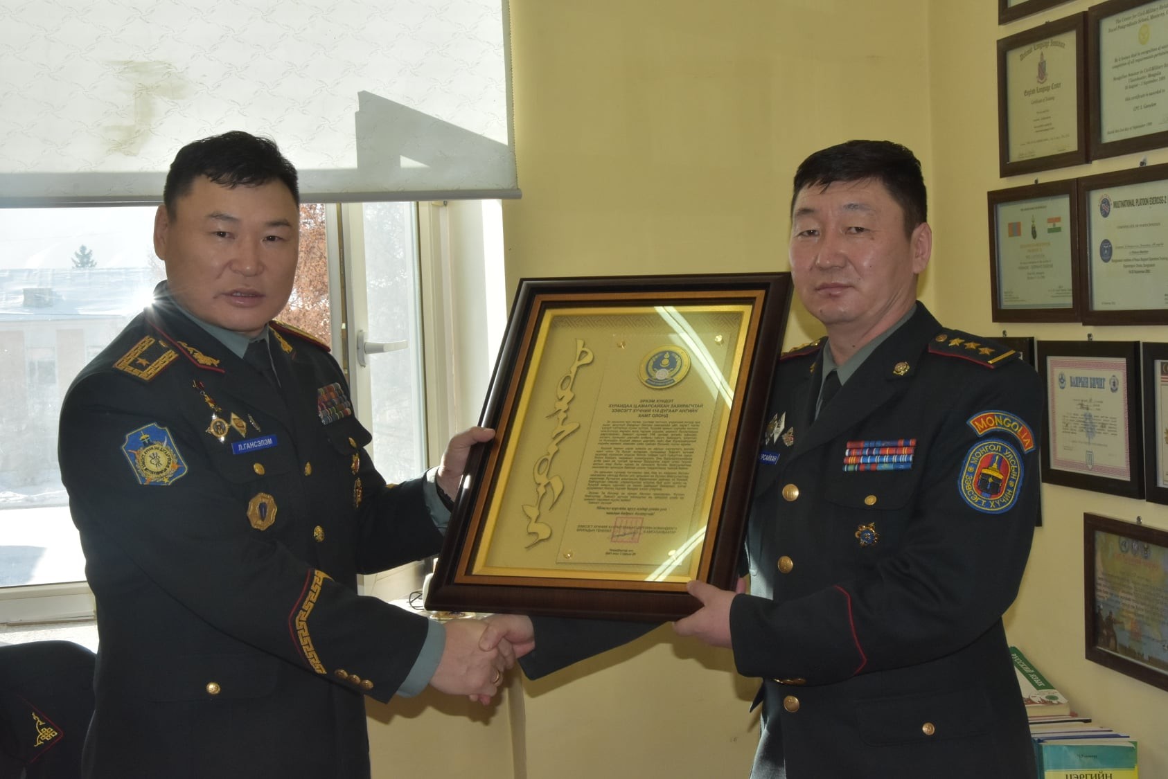 Зэвсэгт хүчний Хуурай замын цэргийн командлагч, бригадын генерал Б.Амгаланбаатар Зэвсэгт хүчний 110, 331, 340 дүгээр ангиудын удирдлага, бие бүрэлдэхүүнд талархал илэрхийлж, дурсамж хадгалууллаа.