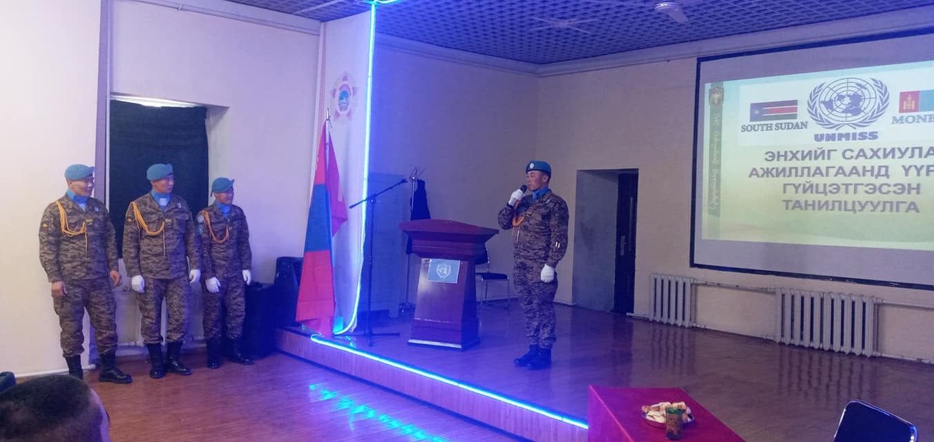 Зэвсэгт хүчний 123 дугаар ангид хугацаат цэргийн алба хаасан залуус цэргийн гэрээт алба хаагчаар улирч үлдэх сонирхол дүүрэн байдаг билээ. Хугацаат цэргийн алба хаагчаас цэргийн гэрээт алба хаагч, бүр цаашлаад ахлагч, офицер болон дэвшсэн нь ч тэдний дунд цөөнгүй байдаг юм. Энэ утгаар нь Зэвсэгт хүчний 123 дугаар ангийн удирдлага, хамт олон хугацаат цэргийн алба хаагчдадаа цэргийн гэрээт албаны талаар яриа таниулгыг тогтмол явуулж ирсэн бөгөөд энэ удаа энхийг сахиулах ажиллагаанд үүрэг гүйцэтгэсэн цэргийн гэрээт алба хаагчид албаныхаа талаар хийсэн яриа байв. БНӨСУ-д явагдаж байгаа "UNMISS" ажиллагаанд Монгол Улсын Зэвсэгт хүчний 9 дүгээр ээлжийн батальонд үүрэг гүйцэтгэсэн түрүүч Б.Батзаяа, Г.Бат-Эрдэнэ, дэд түрүүч Э.Санжаасүрэн, ахлах байлдагч Э.Буяндалай нар 2020 онд татагдсан ирсэн хугацаат цэргийн алба хаагчдад халдвар, хамгааллыг дэглэмийг баримтлан уулзалт зохион байгуулсан юм. Тэд цэргийн гэрээт албыг сонгох болсон шалтгаан, сонгосноороо өөрөө хэрхэн хөгжиж дэвшсэн, энхийг сахиулах ажиллагаанд оролцсон туршлага сургамж гээд албаныхаа талаар бахархал дүүрэн өгүүлж, байлдагч нарын сонирхсон асуултад хариуллаа. Уулзалтын төгсгөлд тэд “Цэргийн албанд хэрэв та “дурласан” бол тултал нь зүтгэ. Хариуг нь тань эх орон нь заавал өгдөг юм. Эх орондоо зүтгэнэ гэдэг эр хүн бүрт олдоггүй ховор завшаан. Та бүхний ирээдүй гарт тань байна. Албаа сайн хаагаарай” гэдэг үгээр төгсгөсөн юм.