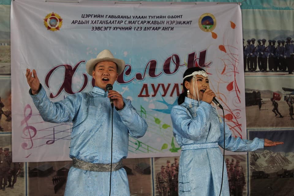 Мөн эмэгтэй цэргийн алба хаагч болоод хугацаат цэргийн алба хаагчдын хамтарсан “Хослон дуулъя” дуэт дууны уралдааныг амжилттай зохиолоо. Уралдааны тэргүүн байрт Д.Цэрэндулам, байлдагч Б.Энхбат нар, дэд байрт ахлагч Н.Нарандулам, байлдагч Г.Билгүүн нар, гутгаар байрт Б.Эрдэнэбилэг, байлдагч М.Нагашбай нар авьяас чадвараараа илүүрхэн оролцсон юм. Хамт олны дулаан уур амьсгалыг бүрдүүлэх, гар нийлэмжтэй ажиллагааг бэхжүүлэх зорилготой энэхүү тэмцээнд оролцогчид сэтгэл хангалуун байсан юм.
