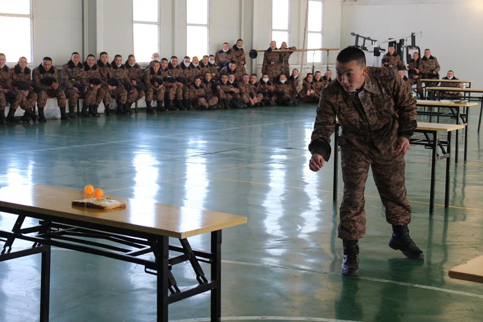 Зэвсэгт хүчний 123 дугаар ангиас бие бүрэлдэхүүнийхээ дунд цэргийн сургалт бэлтгэлийг тусгай төлөвлөгөөтэйгээр явуулахын сацуу соёл хүмүүжлийн ажил, арга хэмжээг ч шат дараатай зохион байгуулж байна. Үүний нэг нь алба, салбараа сурталчлах аян юм. Аяны хүрээнд байнгын бие бүрэлдэхүүний дунд “Чанга шивнээ” болон гар бөмбөгийн аварга шалгаруулах тэмцээнийг явуулахад хөгжөөнт уралдаанд Инженерийн албаны ахлагч Б.Болормаа, ахлагч Б.Мөнхтулга нар тэргүүлж, Хувцасны албаны ахлагч Б.Батзориг, дэд ахлагч н.Амгалан нар удаалав. Гар бөмбөгийн тэмцээнд Холбооны алба манлайлж, Зэвсгийн алба, Мотобуудлагын батальоны багууд удааллаа.