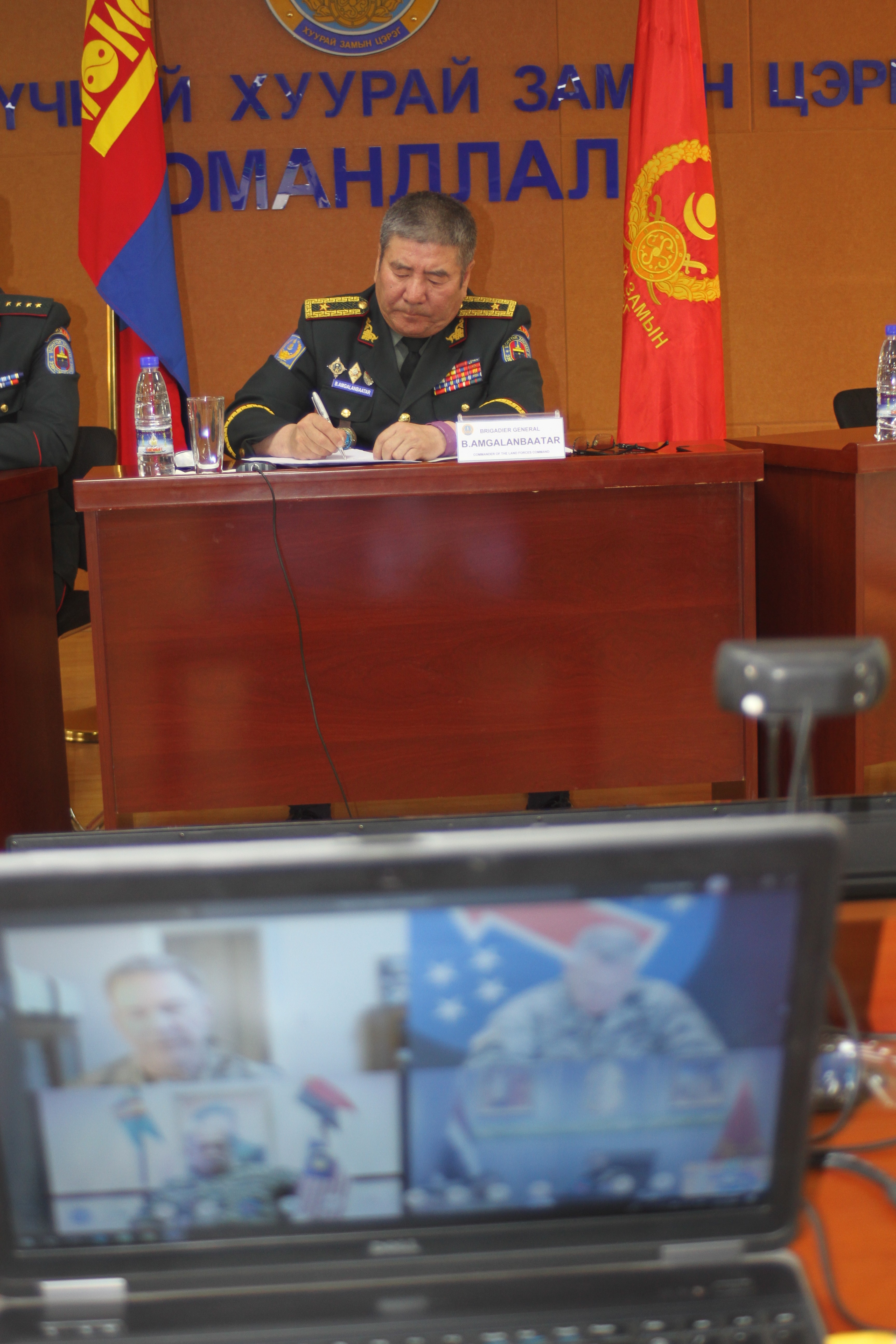 Хуралд Хуурай замын цэргийн ахлагч, тэргүүн ахлагч Д.Мөнхбаяр, АНУ-аас Монгол Улсад суугаа Батлан хамгаалахын атташе, дэд хурандаа Филип Х.Лью нарын албаныхан оролцож байна.