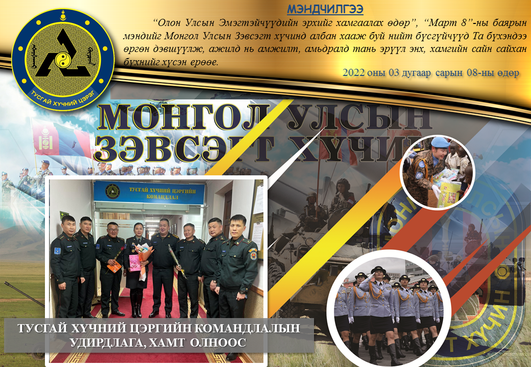 Олон Улсын эмэгтэйчүүдийн эрхийг хамгаалах өдрийн МЭНДЧИЛГЭЭ