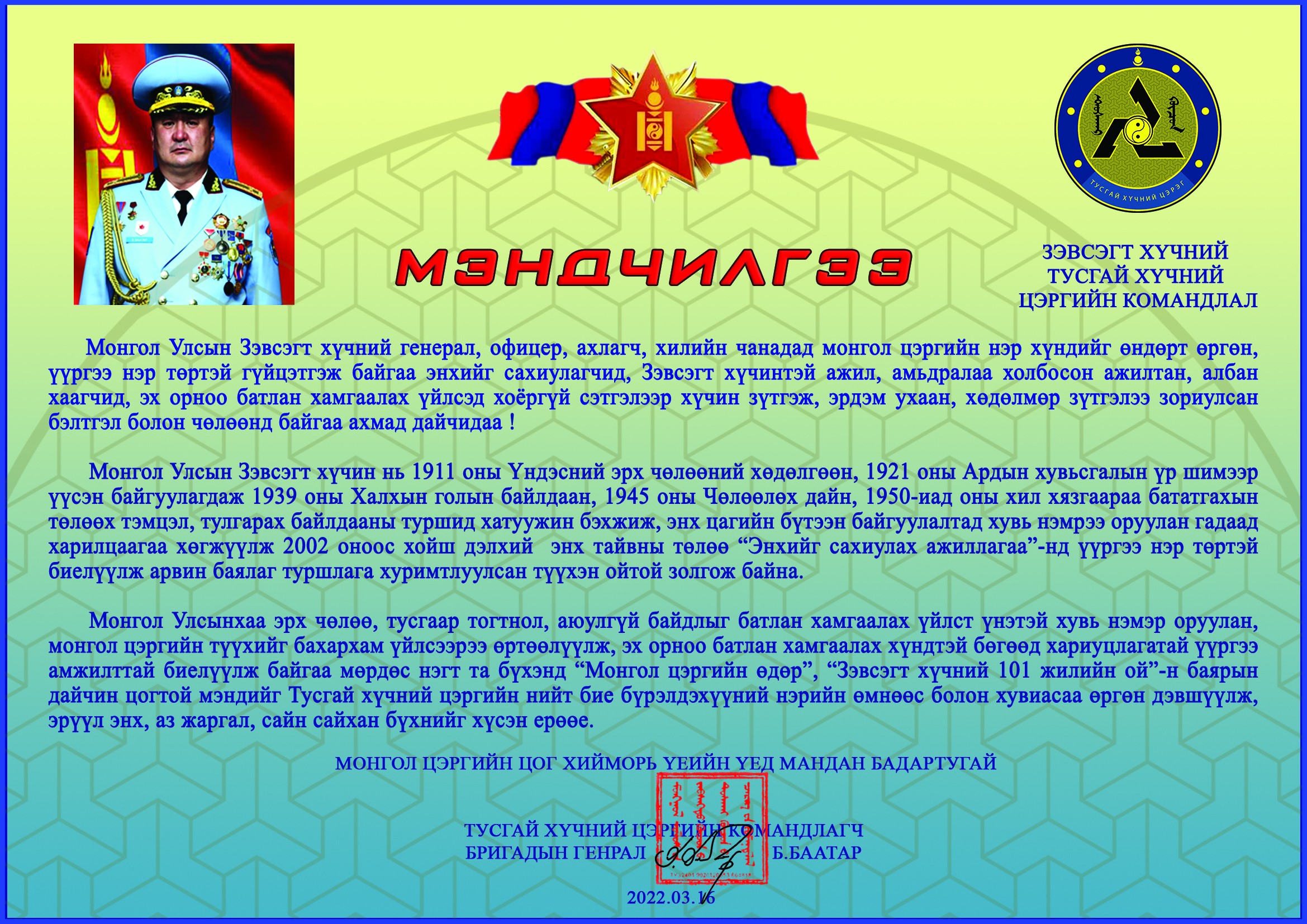 ТУСГАЙ ХҮЧНИЙ ЦЭРГИЙН КОМАНДЛАЛ