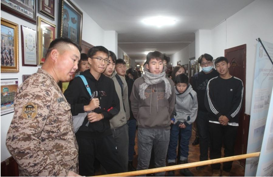 Хүүхэд, залуучуудад цэрэг- эх оронч үзэл хүмүүжлийг олгох, иргэн-цэргийн харилцааг бэхжүүлэх, Зэвсэгт хүчний үйл ажиллагааг сурталчлах зорилгоор МУИС-ын харьяа “Байгаль эх лицей сургууль”-ийн экологийн ерөнхий боловсролын сургуулийн 11 дүгээр ангийн 25 сурагчийг 2022 оны 11 дүгээр сарын 07-ны өдөр тус ангийн байрлалд хүлээн авч “Эх орны цэрэг-сурагчийн нэг өдөр” сэдэвт өдөрлөгийг зохион байгуулж явууллаа.