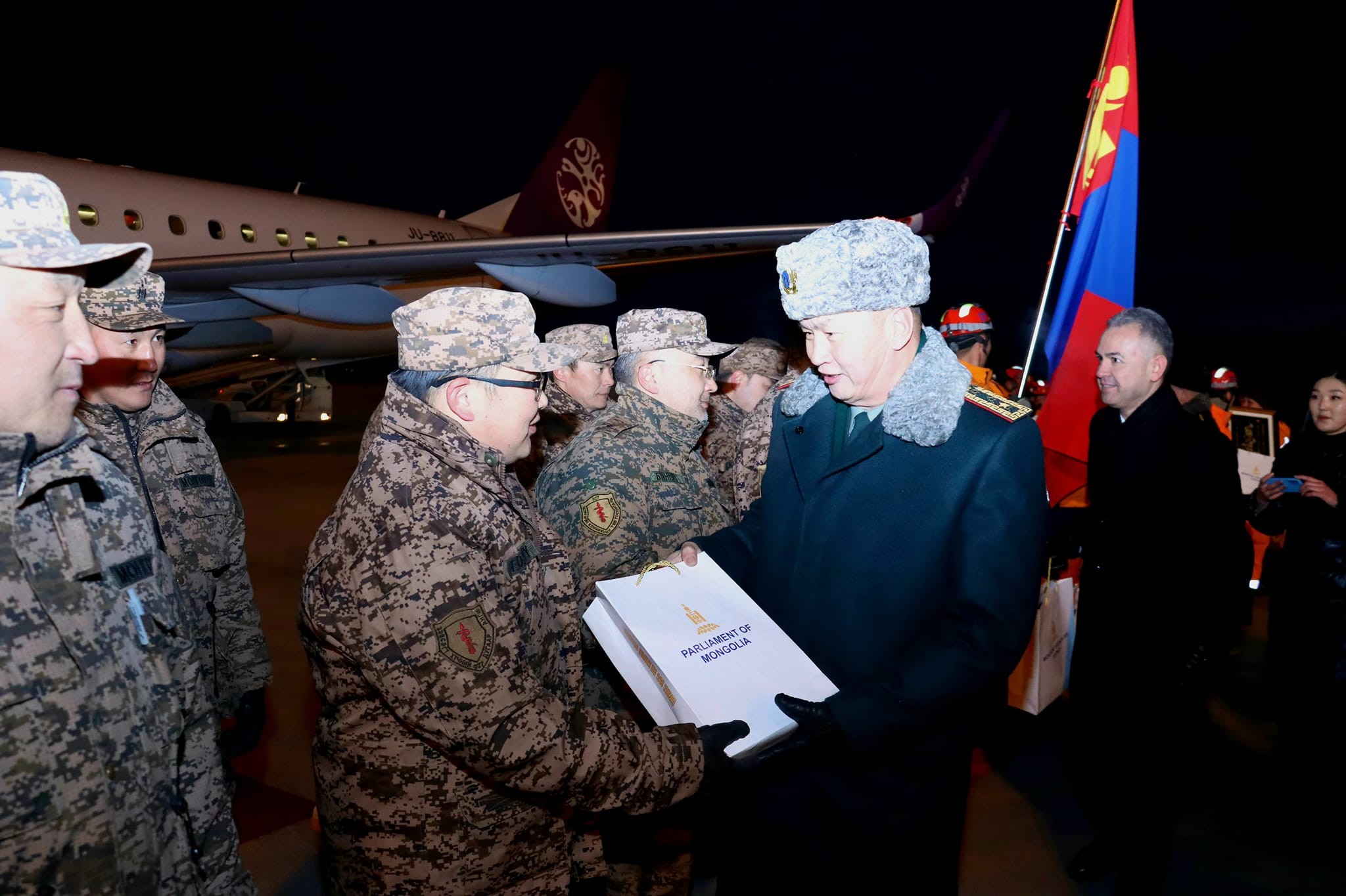 Бүгд Найрамдах Турк Улсын Хатай мужид эрэн хайх, аврах ажиллагаанд оролцсон 35 хүний бүрэлдэхүүнтэй баг дөнгөж сая эх орондоо газардлаа. Бие бүрэлдэхүүнийг Монгол Улсын Шадар сайд С.Амарсайхан угтан авч баяр хүргэв. Тэрээр энэ үеэр үүрэг гүйцэтгэсэн алба хаагчдад "Цагийн хүрдийн баатрууд"-ын өргөмжлөлийг гардуулсан юм. Тус үйл ажиллагаанд ЗХЖШ-ын дарга бригадын генерал С.Ганбямба, ОБЕГ-ын дарга хошууч генерал Г.Ариунбуян, Батлан хамгаалахын Ерөнхий хянан шалгагч бригадын генерал Ж.Болдбаатар, Цэргийн төв эмнэлгийн дарга-ерөнхий эмч хурандаа Б.Энх-Од болон бусад албаныхан оролцлоо.
