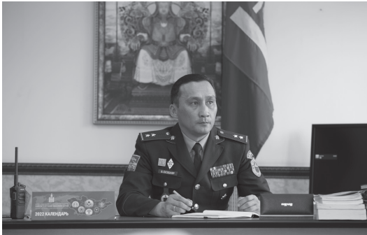 Захирагчаар нь дэд хурандаа Б.Олзбаяр ажиллаж байна. Мөн л эл ангийн "бүтээгдэхүүн". Түүнийг ажлын ширээнийх нь ард "уях" гэж хэсэгхэн хүлээв. Захирагчийн өрөөгөөр бичиг цаас болсон хүмүүс орж гарах нь элбэг. Бидний ээлж ч ирлээ.
