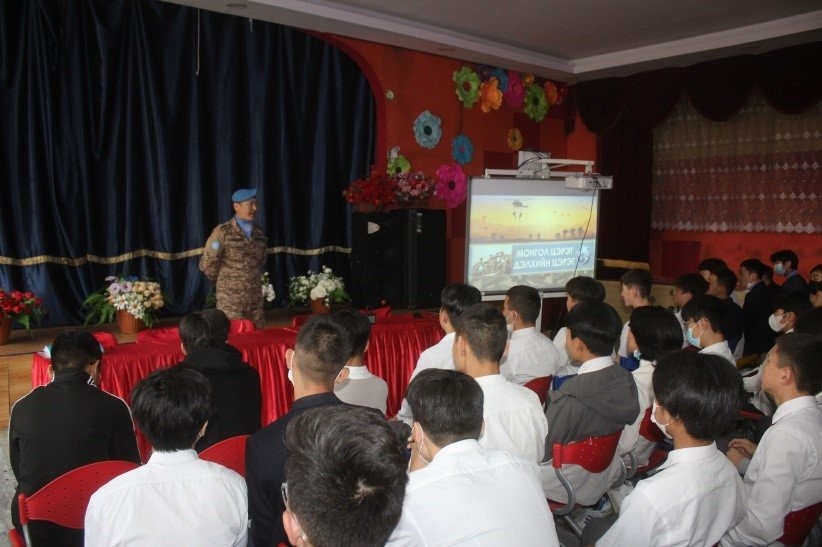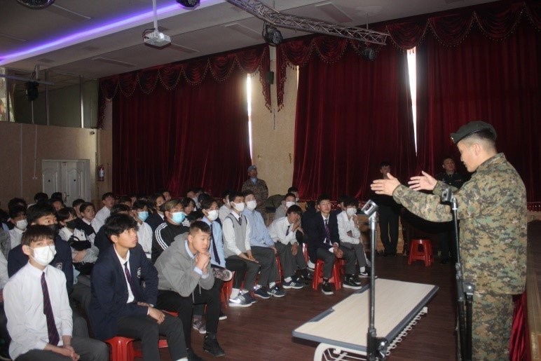 Монгол цэрэг энхийг дэмжих ажиллагаанд оролцож эхэлсний 20 жилийн ойг тохиолдуулан ангийн шүхэрчин дайчид, Баянзүрх дүүргийн ЗДТГ-ын Цэргийн штабтай хамтран Ерөнхий боловсролын сургуулийн ахлах ангийн сурагчдад Зэвсэгт хүчнийг сурталчлах ажиллагааг зохион байгууллаа.