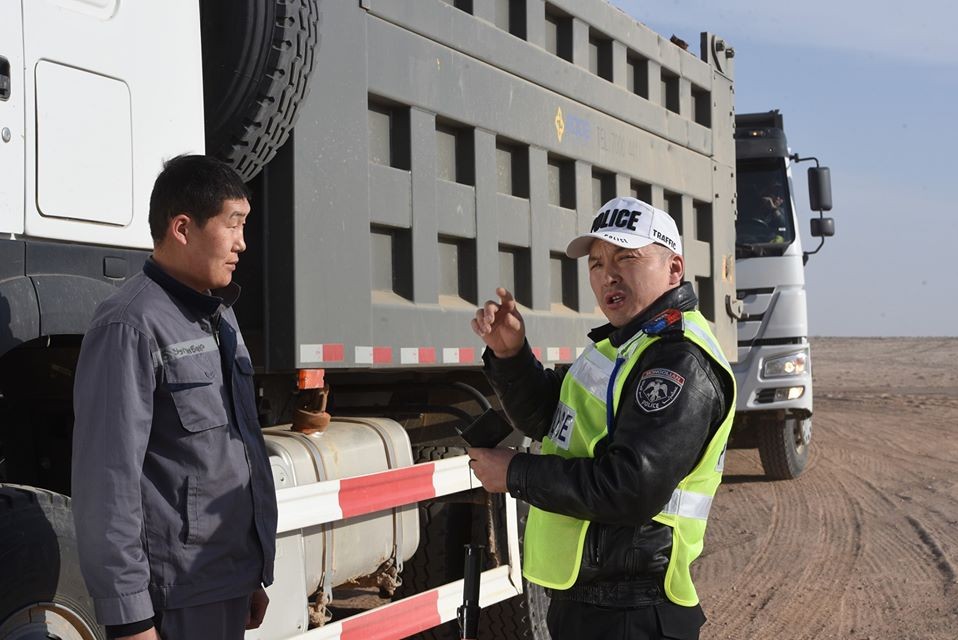Бүтээн байгуулалтын талбарт цөөнгүй тооны Тээврийн цагдаагийн албаны зохицуулагч нар ажилладаг. Тэд тус бүтээн байгуулалтад оролцож буй техник хэрэгслүүдийг болон орон нутгийн тээврийн хэрэгслийг технологийн зам дээр хөдөлгөөнд оролцоход нь аюулгүй байдлыг нь хангуулах чиг үүрэгтэй. Энд үүрэг гүйцэтгэж буй цагдаагийн ахмад Б.Мягмарбат, ахлах дэслэгч С.Сэр-Од нар цэргийн алба хаагчидтай ажиллахад хялбар, сахилга баттай, өндөр зохион байгуулалттай, дүрэм, журмаа сайтар мөрддөг талаар онцолж байсан юм. Ахлах дэслэгч С.Сэр-Од өөрийгөө голдог ч гэлээ бичиж туурвих сонирхолтой. Тэрээр энд байх хугацаандаа шүлэг тэрлээд амжсан гэнэ. Тэрхүү шүлгээр нь энэ удаагийн сурвалжилгаа өндөрлөе.