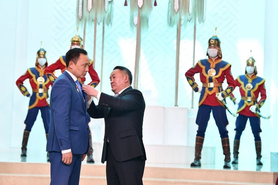Ийнхүү эх орныхоо стратегийн өндөр ач холбогдолтой төмөр замыг богино хугацаанд барих ажлыг гардан удирдах, амжилттай хэрэгжүүлэх ажлыг манлайлсан мөн халдварт цар тахалтай тэмцэх ажилд онцгой үүрэг гүйцэтгэсэн болон гүйцэтгэсээр байгаа Та бүхэндээ баяр хүргэж, улам их амжилтыг бэлгэдэн ерөөе.