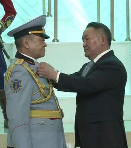 Шинэ төмөр замын бүтээн байгуулалтыг богино хугацаанд хариуцлагатайгаар амжуулж, улс эх орондоо эдийн засаг, нийгмийн цогц дэвшлийг бий болгоход хүчин зүтгэсэн гавьяа зүтгэлийг тань үнэлэх үүргийг бүх ард түмнээс сонгогдсон Ерөнхийлөгчийн хувиар би гардан гүйцээж, ард түмнийхээ нэрийн өмнөөс Та бүхэнд мэхийн ёслоё. Баярлалаа.