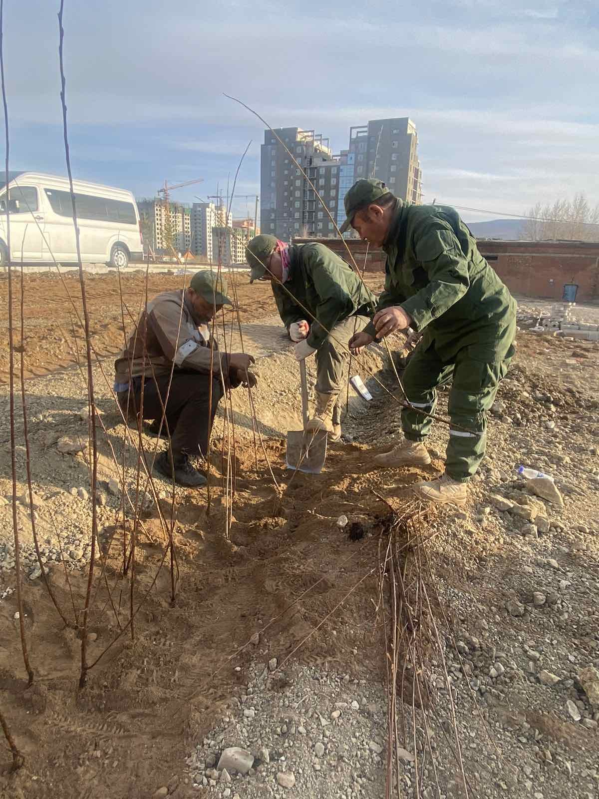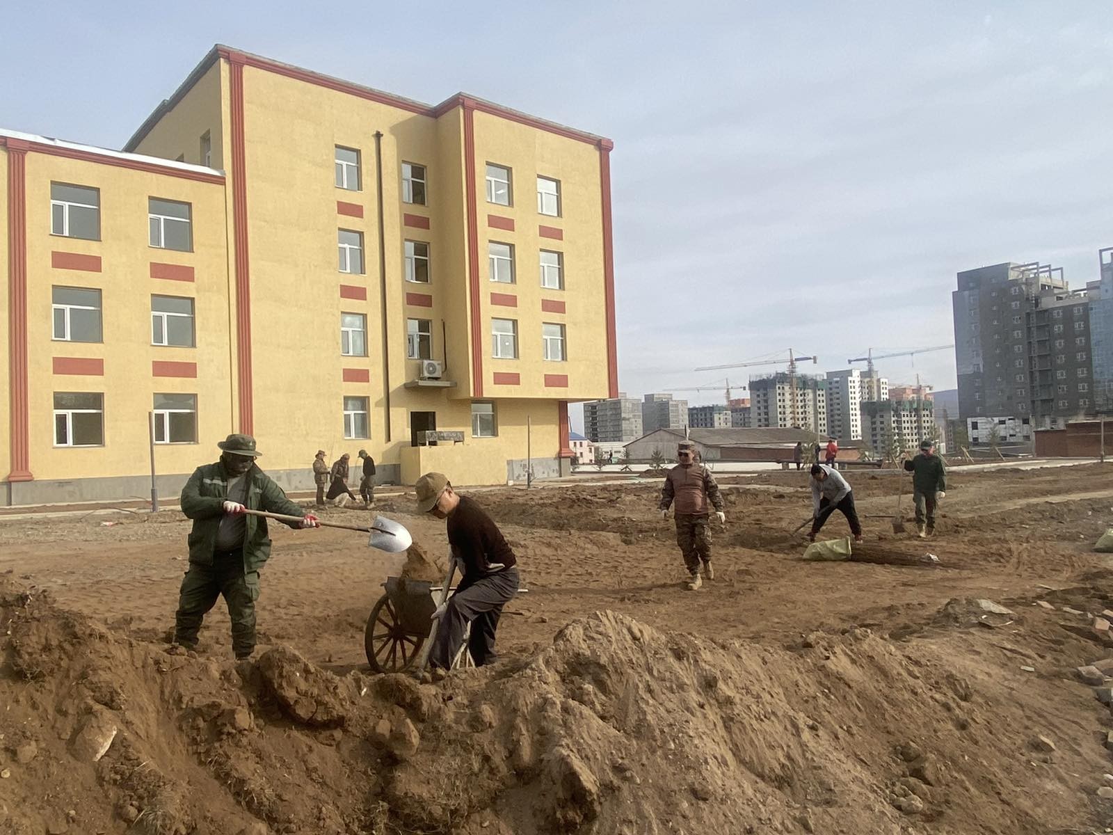 Энэхүү ажлын хүрээнд Барилга-инженерийн цэргийн удирдах газрын бие бүрэлдэхүүн 10 дугаар сарын 19-ний өдөр удахгүй ашиглалтад орох барилгынхаа гадна талбайд нарс 22 ширхэг, гацуур 17 ширхэг, бургас 1000 ширхгийг технологийн дагуу тарьж, орчны тохижилтыг нь гүйцэтгэлээ. Энэ нь ногоон байгууламжаараа орчин тойрондоо өнгө нэмэх “Эко хотхон“ болох зорилгын эхлэл юм.