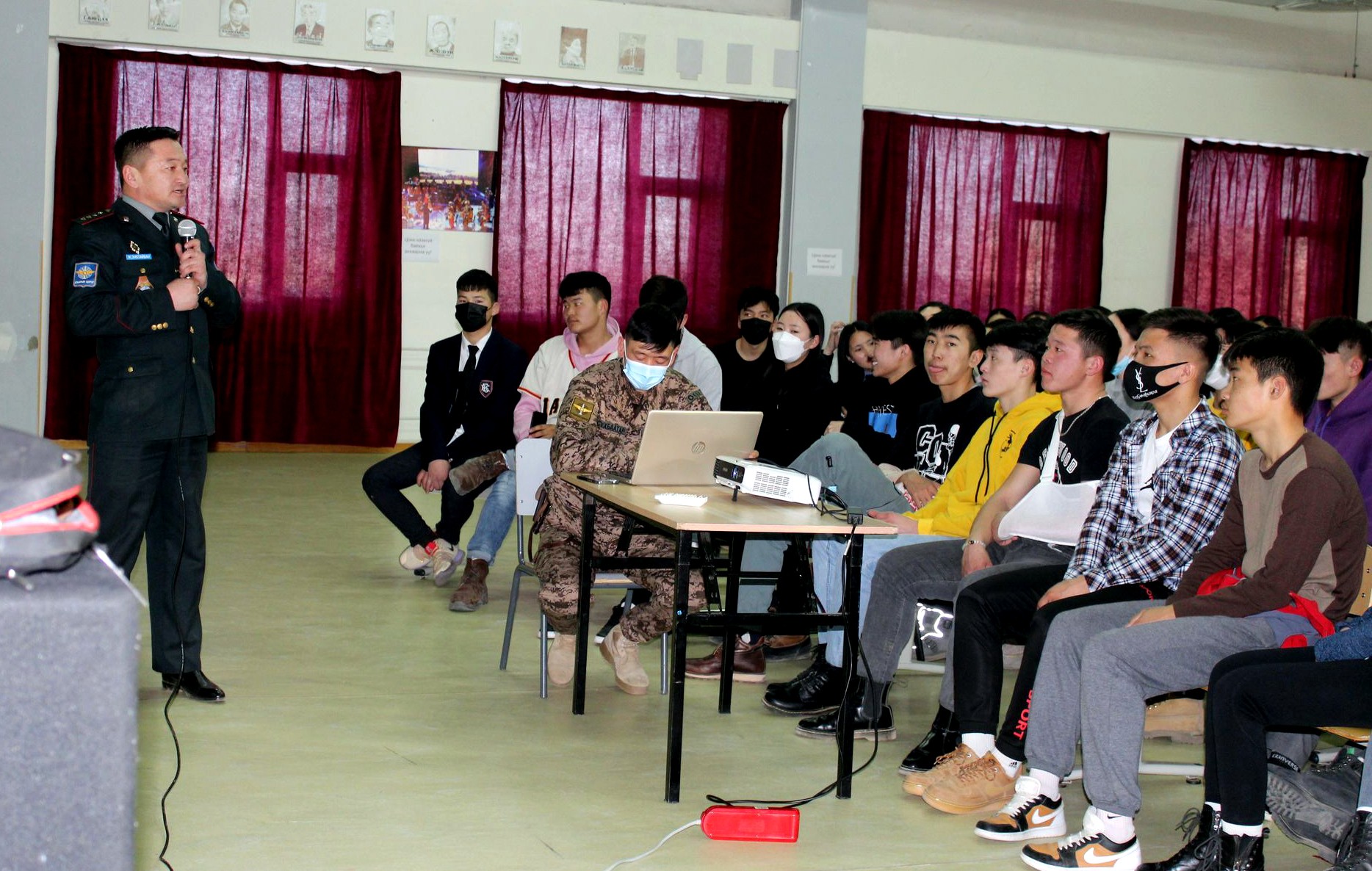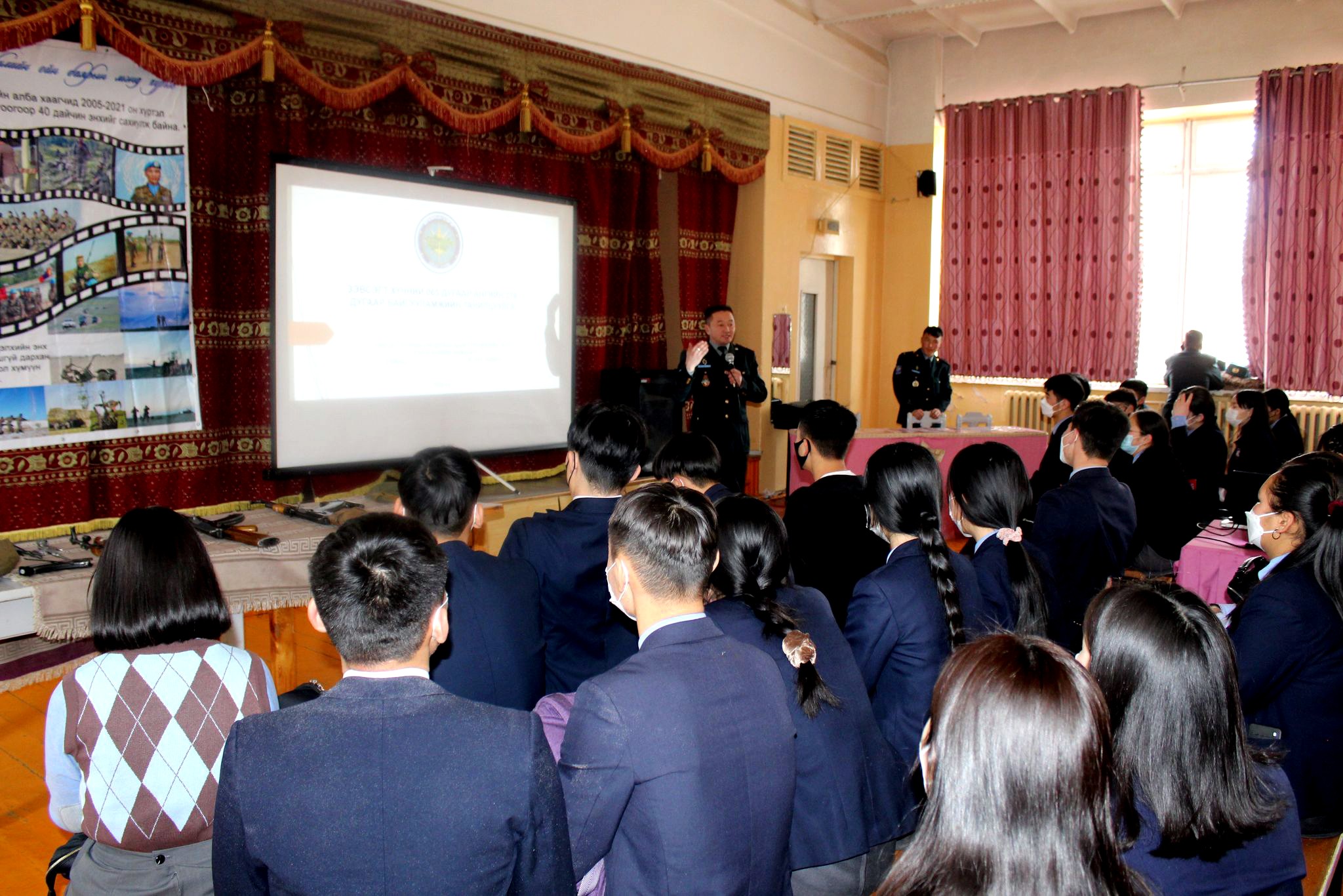 Монгол Улсын Зэвсэгт хүчин, Агаарын цэргийн командлал Зэвсэгт хүчний 065 дугаар ангийн тусгай байгууламжийн танилцуулга хийж, “Цэрэг эх оронч хүмүүжил”, “Монгол цэрэг дэлхийн цэрэг” сэдвээр сурагчдад харилцан ярилцлаа.
