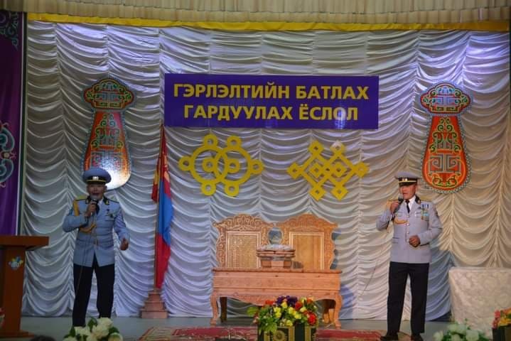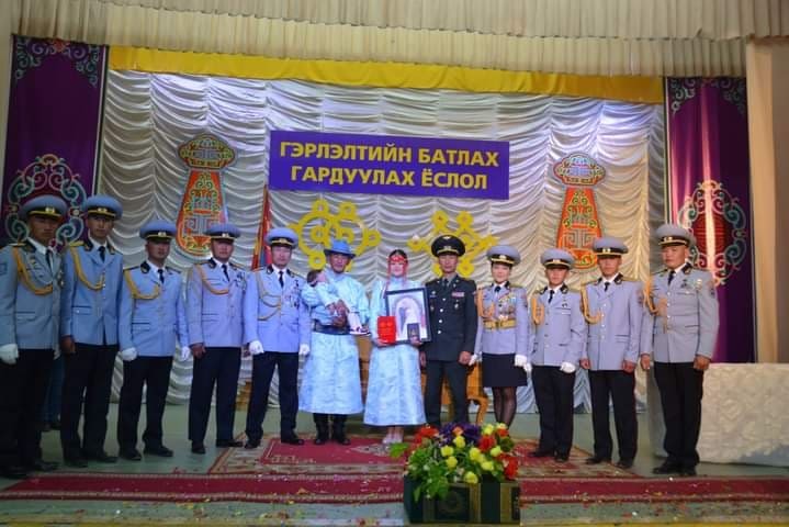 “Хаан бугуйвч, Хатан сүйх” ёслолд Зэвсэгт хүчний 325 дугаар анги, Онцгой байдлын газар “Алтай-Улиастай эрчим хүчний систем” ТӨХК, Цагдаагийн газар зэрэг байгууллагуудын 10 залуу хосын гэрлэлтийг баталсан юм.