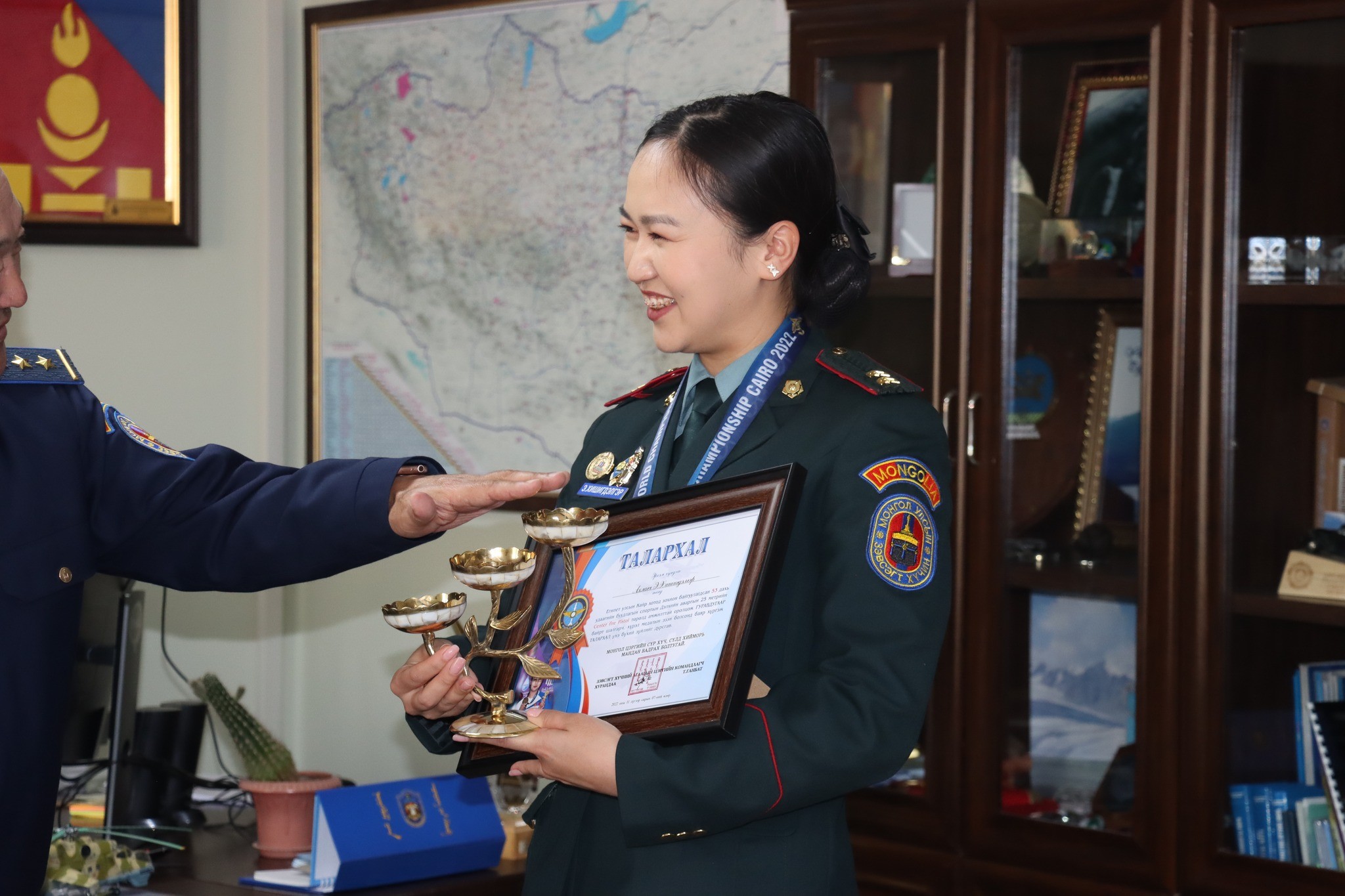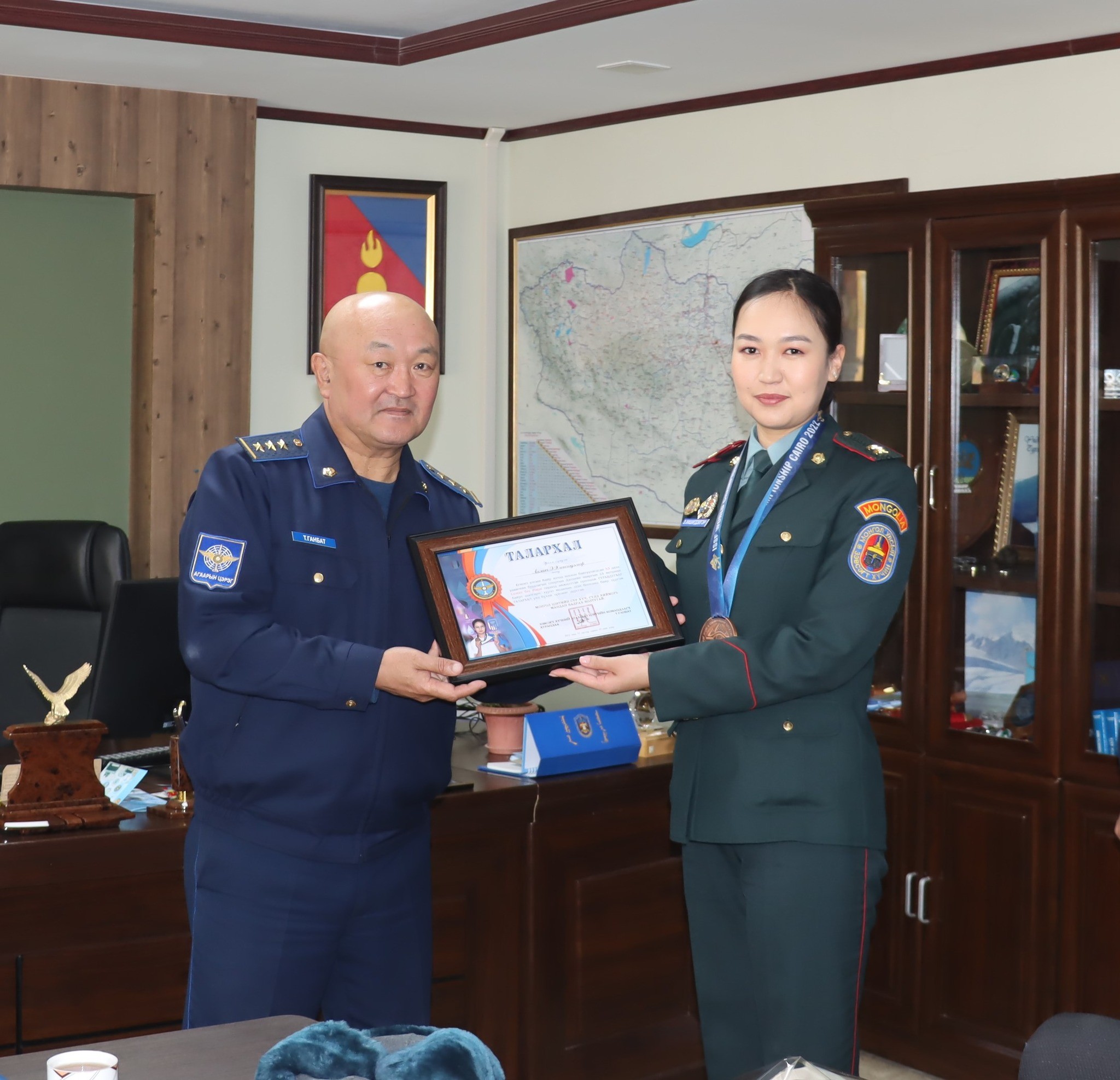Египет Улсын Кайр хотод зохион байгуулагдсан Буудлага спортын Дэлхийн аварга шалгаруулах 53 дахь удаагийн тэмцээнд амжилттай оролцож хүрэл медаль хүртсэн Монгол Улсын шигшээ баг, БХЯ-ны “Алдар” спорт хороо, Зэвсэгт хүчний 353 дугаар ангийн тамирчин ОУХМ, ахлагч Э.Хишигдэлгэрийг Агаарын цэргийн командлалын хамт олон хүлээн авч хүндэтгэл үзүүллээ.