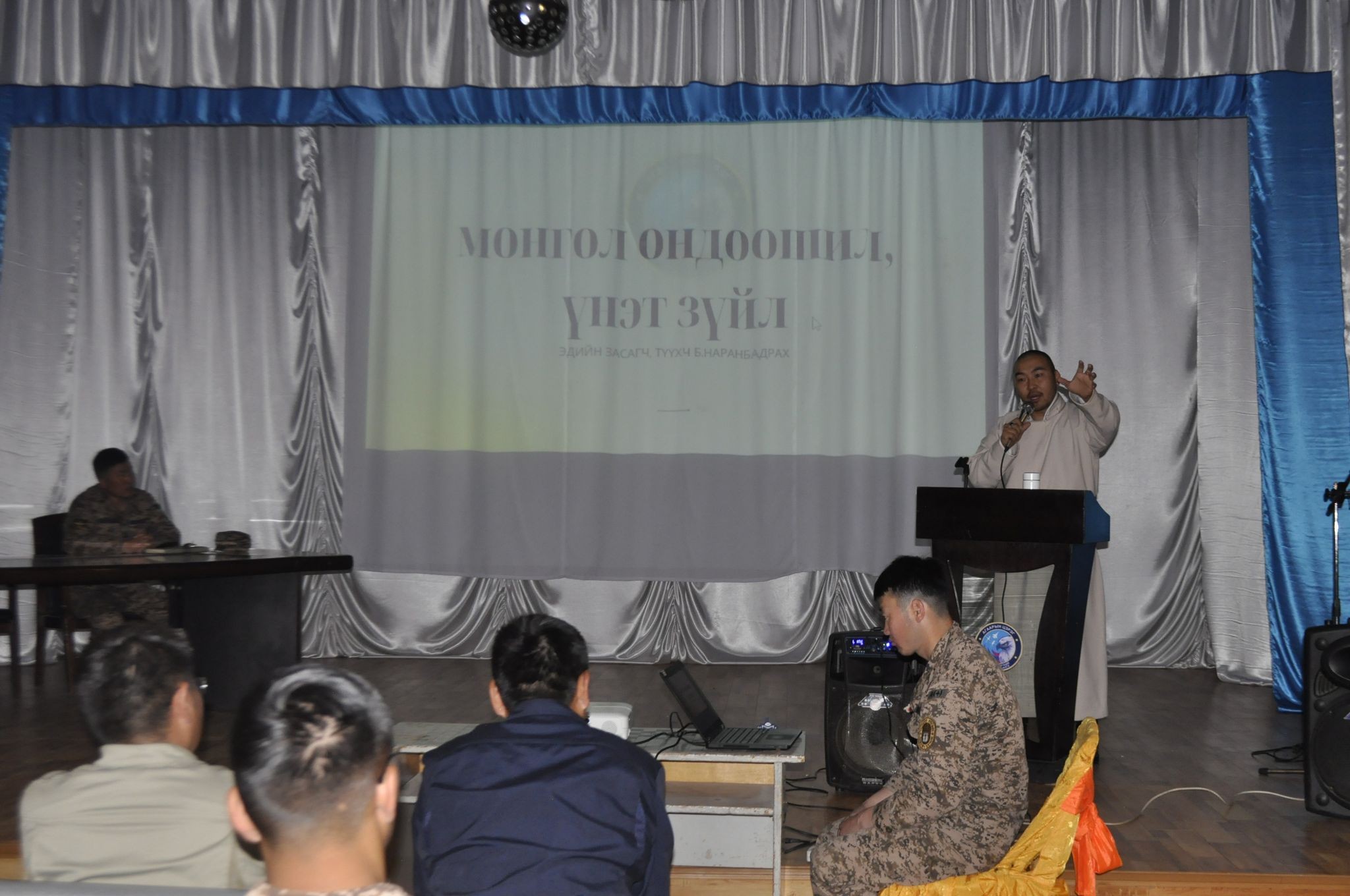 Зэвсэгт хүчний 337 дугаар анги бие бүрэлдэхүүний сонсгол, мэдээллийн цагаар түүхч, эдийн засагч Батхүүгийн Наранбадрахыг урьж “Монгол ондоошил, үнэт зүйл” сэдвээр сургалт зохион байгууллаа.