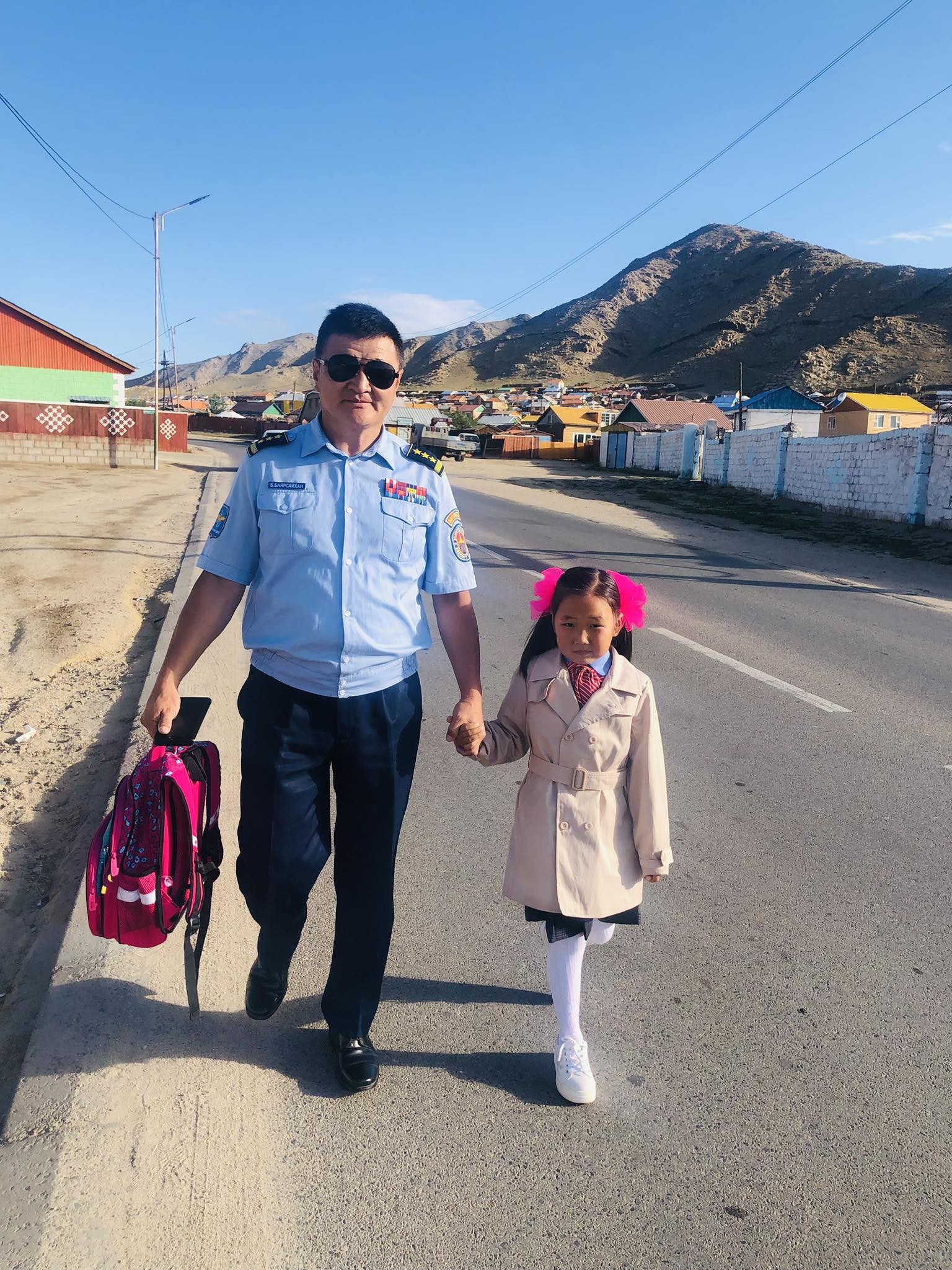 Зэвсэгт хүчний Агаарын цэргийн командлалын харьяа, Завхан аймаг дахь 325 дугаар ангийн захирагч хурандаа Б.Баярсайханы 09 сарын 01-ний өглөө охиноо сургуульд нь хүргэж өгөх хүндтэй үүргээ биелүүлэхээр алхаж яваа зураг олон нийтийн сүлжээнд тавигджээ. Хурандаагийн охин Б.Нандинхишигийн хөгжилтэй, хэвлүүхэн яриагаар өнөөдөр уншигч та бүхэнд эерэг мэдээлэл хүргэе.