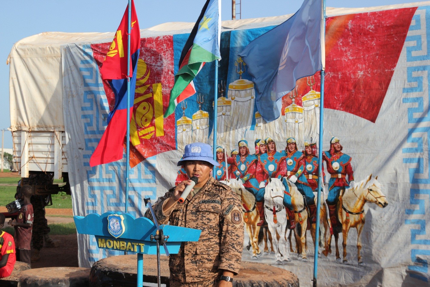 БНӨСУ-д НҮБ-ын UNMISS ажиллагаанд үүрэг гүйцэтгэж буй Монгол Улсын Зэвсэгт хүчний мотобуудлагын батальоны VIII ээлжийн цэнхэр дуулгатнууд иргэн цэргийн харилцааг бэхжүүлэх хүмүүнлэгийн ажлаа хийсэн байна. Тэд Бентью хотын төвд орших доктор Жон Грангийн нэрэмжит “Спорт цогцолбор”-ыг тэдний чөлөөт цагаа зөв зохистой өнгөрүүлэх, спортоор хичээллэх цогц талбайг нь засч тохижуулан Африкийн хүүхдүүдэд бэлэг барьсан талаар бид өмнө мэдээлсэн.