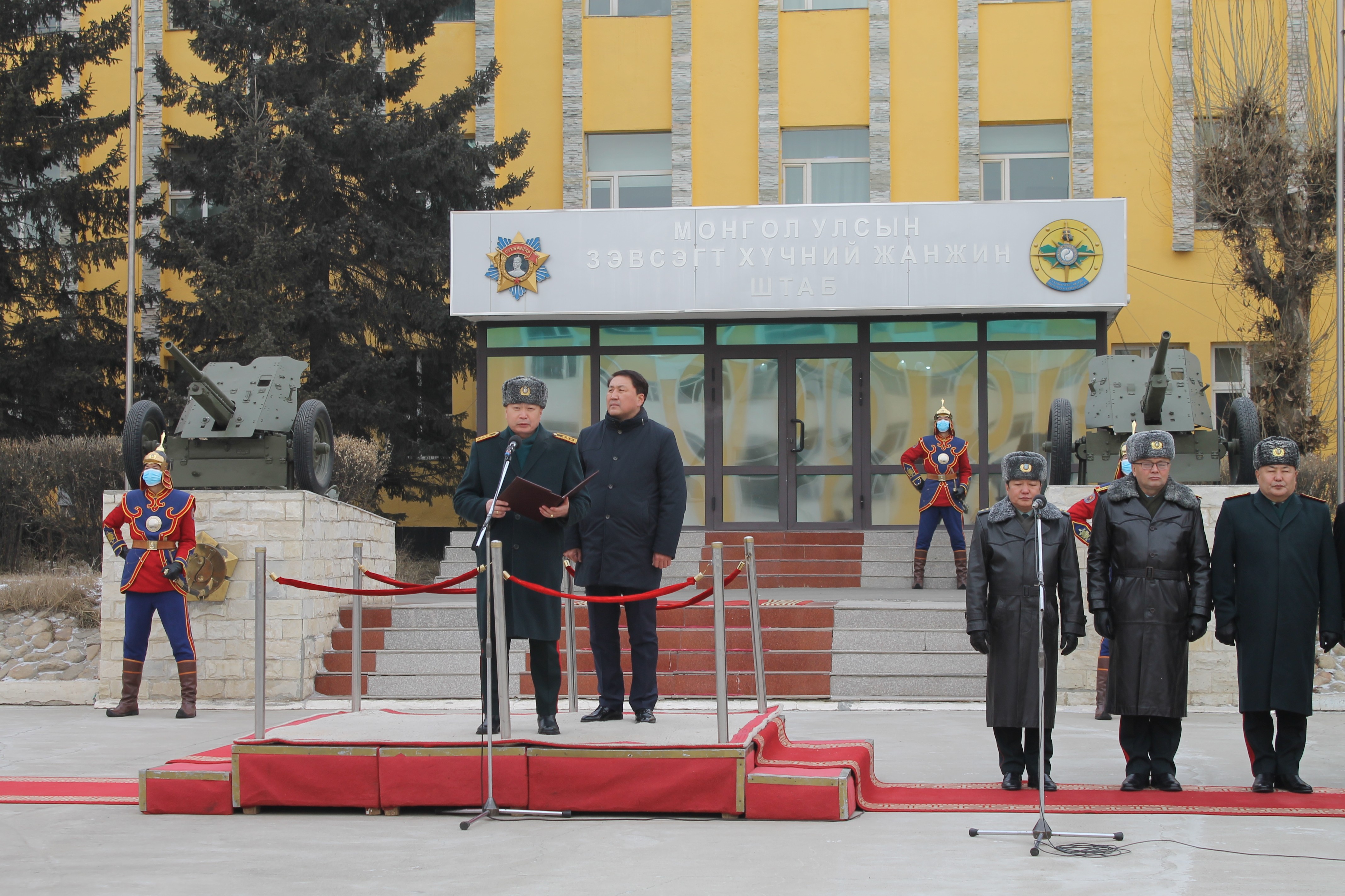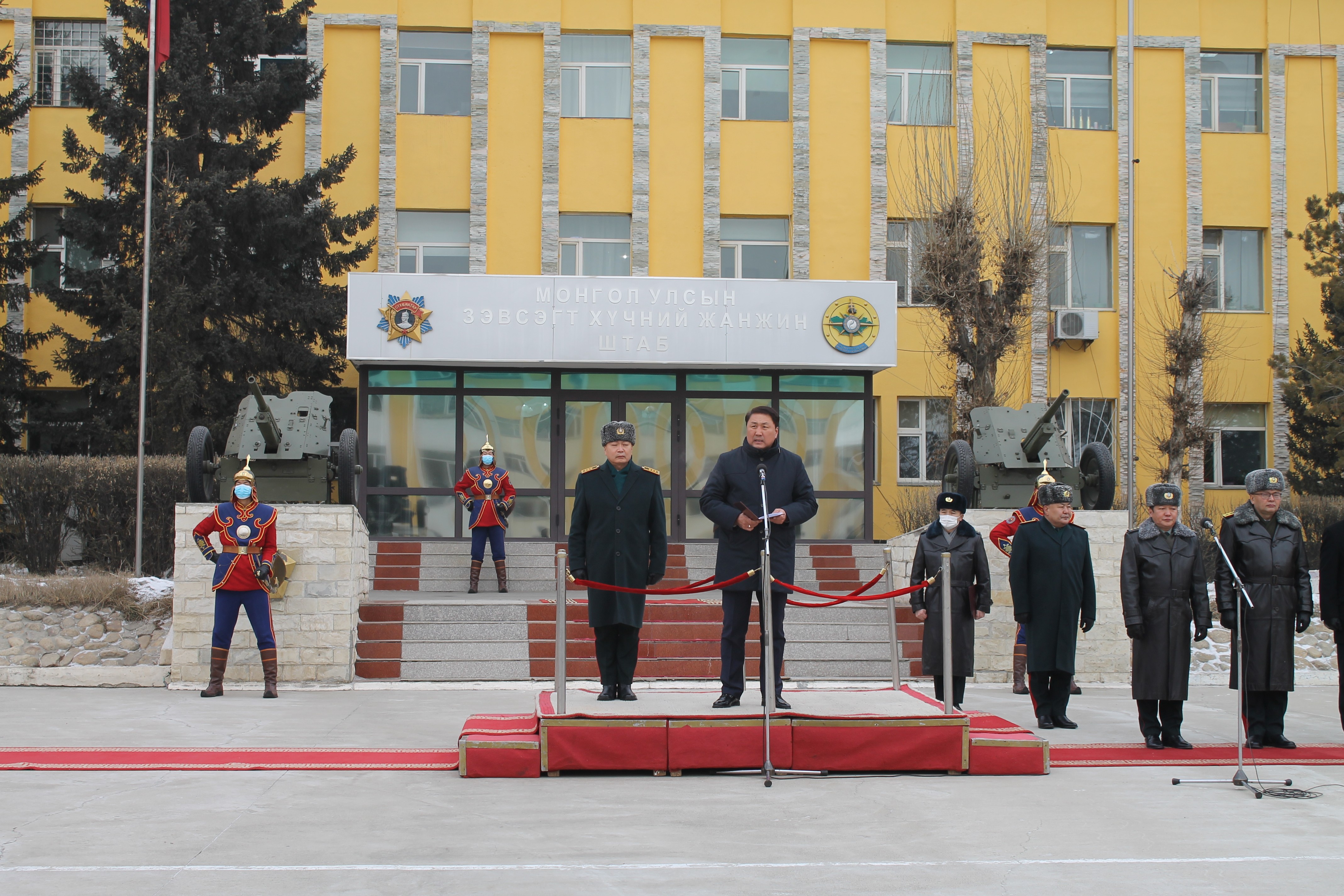 Энэхүү ёслолын ажиллагаанд Монгол Улсын Засгийн газрын гишүүн, Батлан хамгаалахын сайд Г.Сайханбаяр, Зэвсэгт хүчний Жанжин штабын дарга, дэслэгч генерал Д.Ганзориг болон БХЯ, ЗХЖШ-ын удирдлага, Зэвсэгт хүчний төрлийн цэргийн командлал, Барилга-инженерийн цэргийн удирдах газрын бие бүрэлдэхүүн, ахмад дайчдын төлөөлөл оролцлоо.