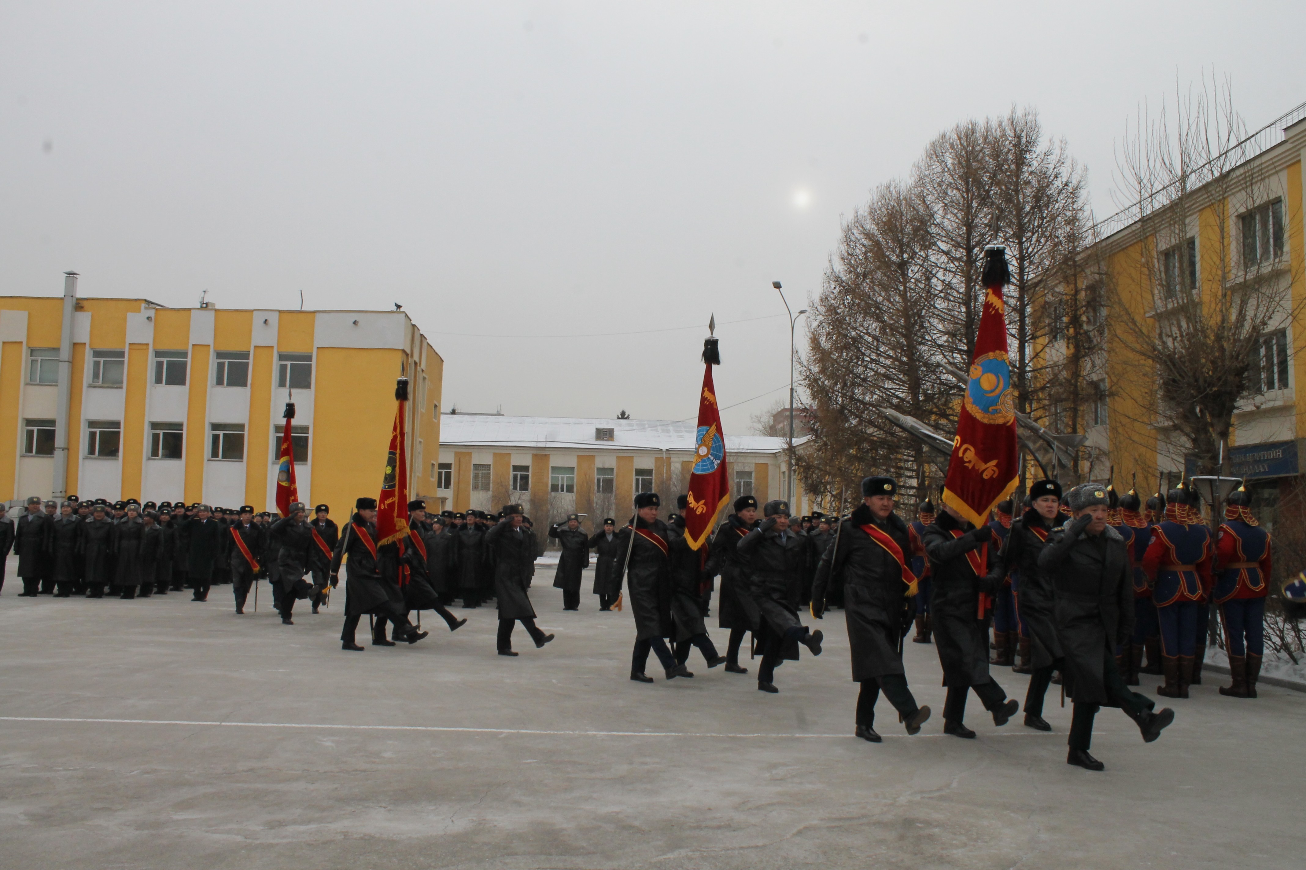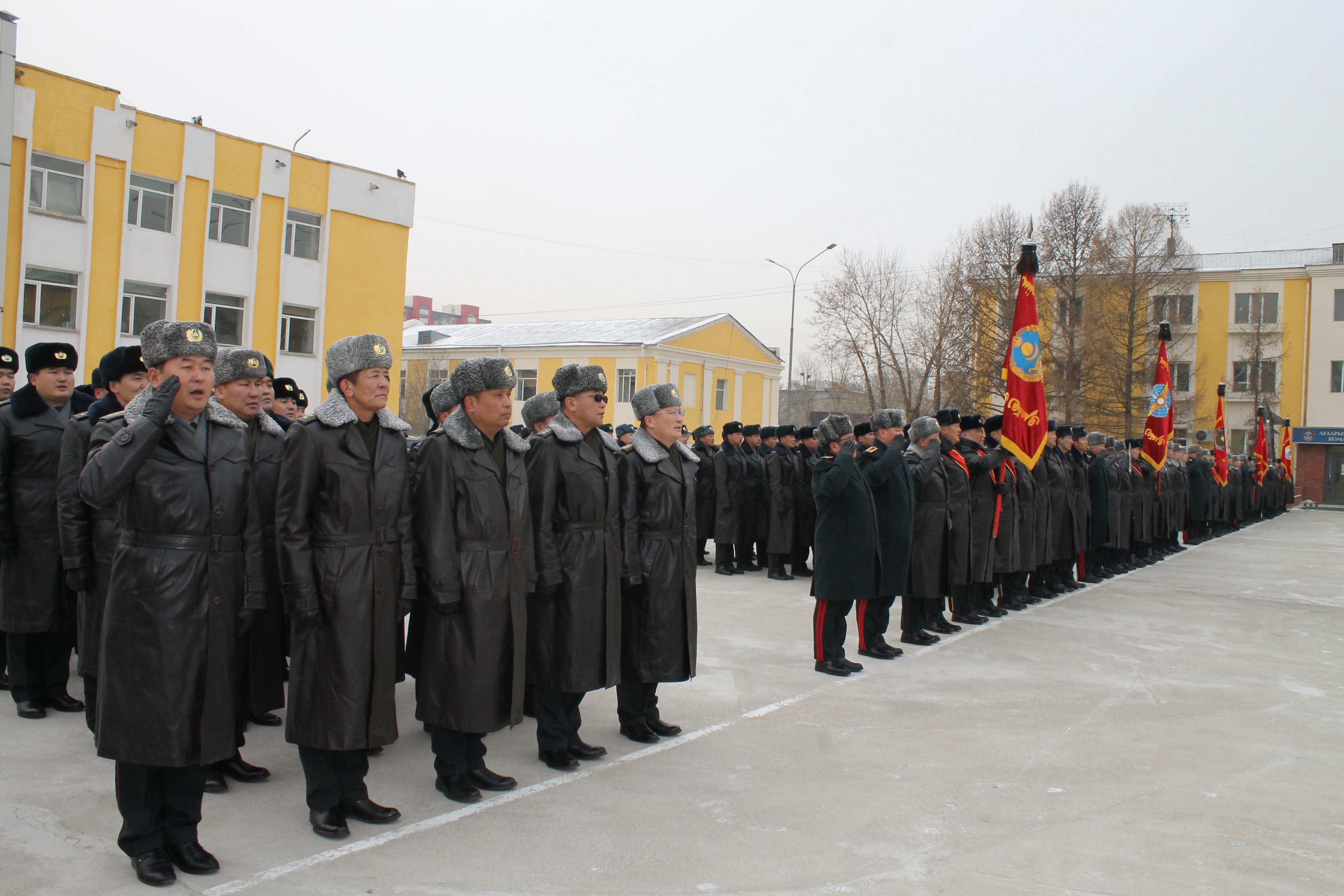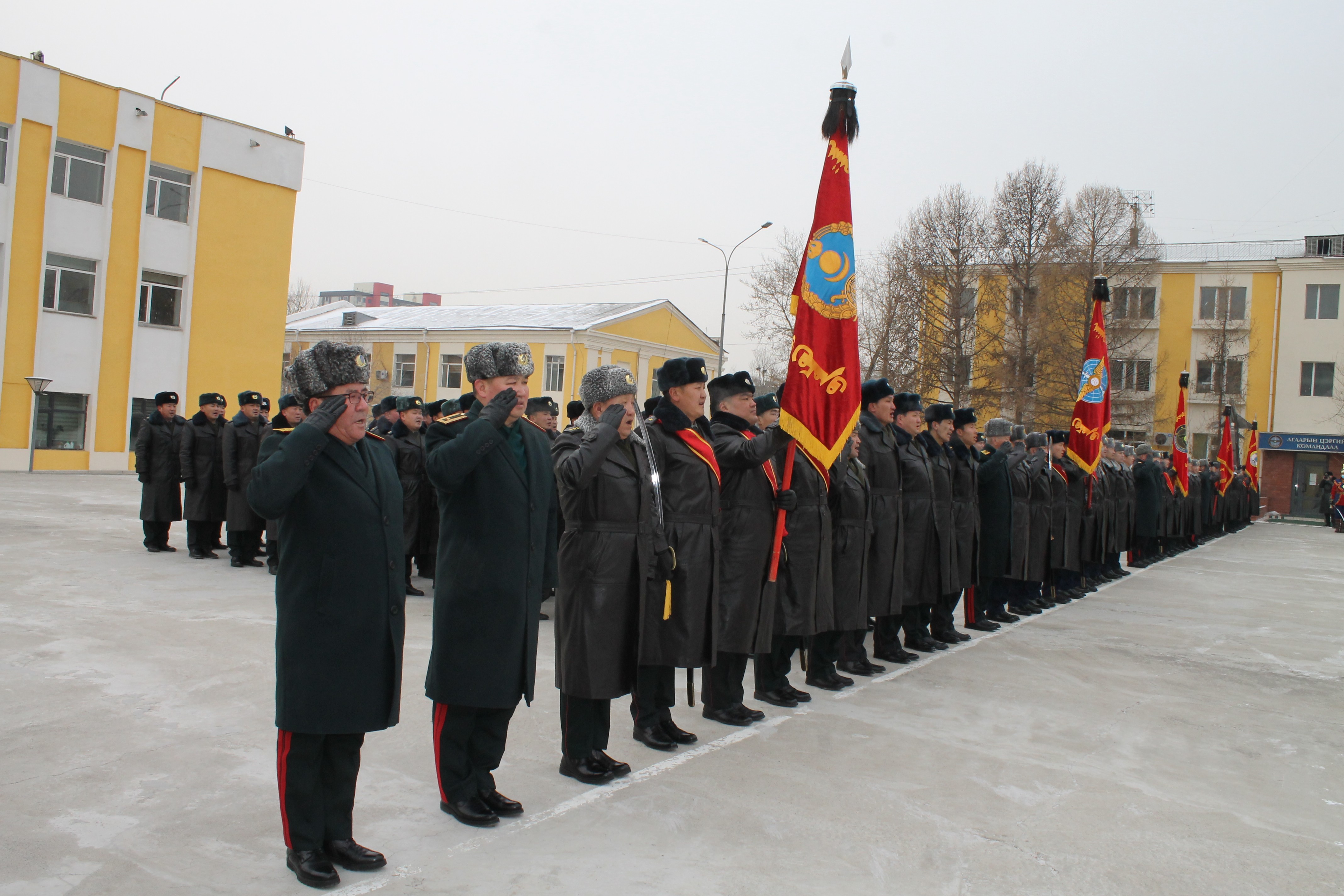 Энэ үеэр Зэвсэгт хүчний Тусгай хүчний командлагч, Кибер аюулгүй байдлын цэргийн командлагч, Барилга-инженерийн цэргийн удирдах газрын дарга нар “Байлдааны туг”-ийг дээш өргөн, бие бүрэлдэхүүнд харуулахад нийт бие бүрэлдэхүүн гурвантаа “Ура” цуурайтуулсны дараа Байлдааны тугуудыг жагсаалд байрлуулсан юм.