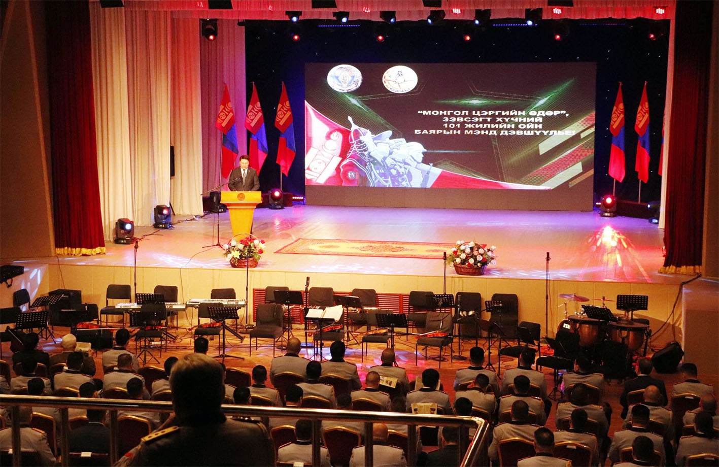 “Монгол цэргийн өдөр”, орчин цагийн Зэвсэгт хүчин үүсэж хөгжсөний 101 жилийн ойн баярын хурал, хүндэтгэлийн арга хэмжээ Офицеруудын ордноо зохион байгуулагдаж байна.