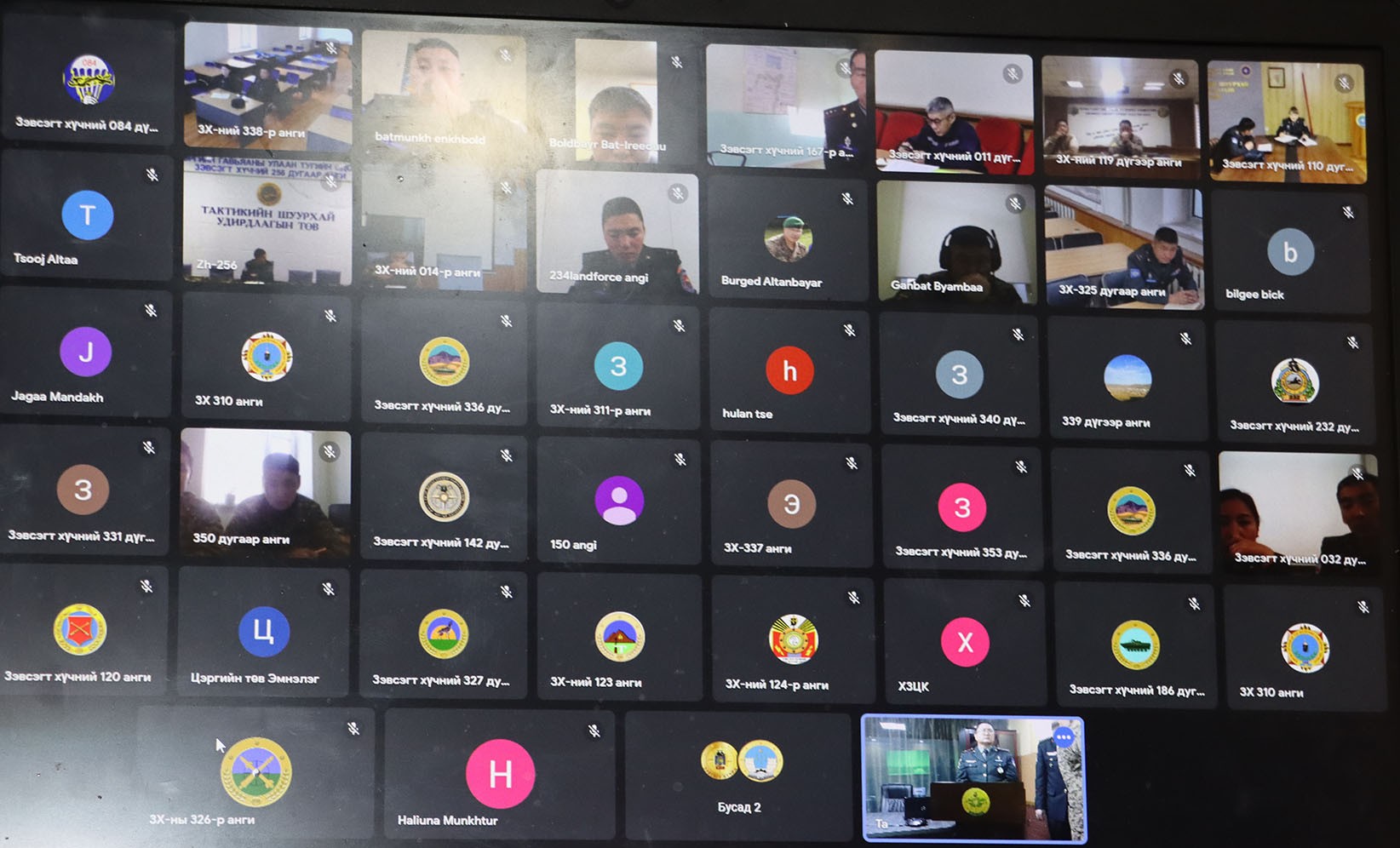 Өнөөдөр буюу 2022 оны 12 дугаар сарын 02-ны өдөр Зэвсэгт хүчний Хяналт-шинжилгээ, үнэлгийн газраас ЗХЖШ-ын зохион байгуулалтын бүтцийн нэгж, төрлийн цэргийн командлал, Барилга-инженерийн цэргийн удирдах газар, нэгтгэл ангий, салбарын Хөдөлмөрийн аюулгүй байдал хариуцсан бүтэц, ажилтнууд, материал хэрэгсэл хариуцсан албан тушаалтнуудтай цахим сургалт зохион байгуулж байна.