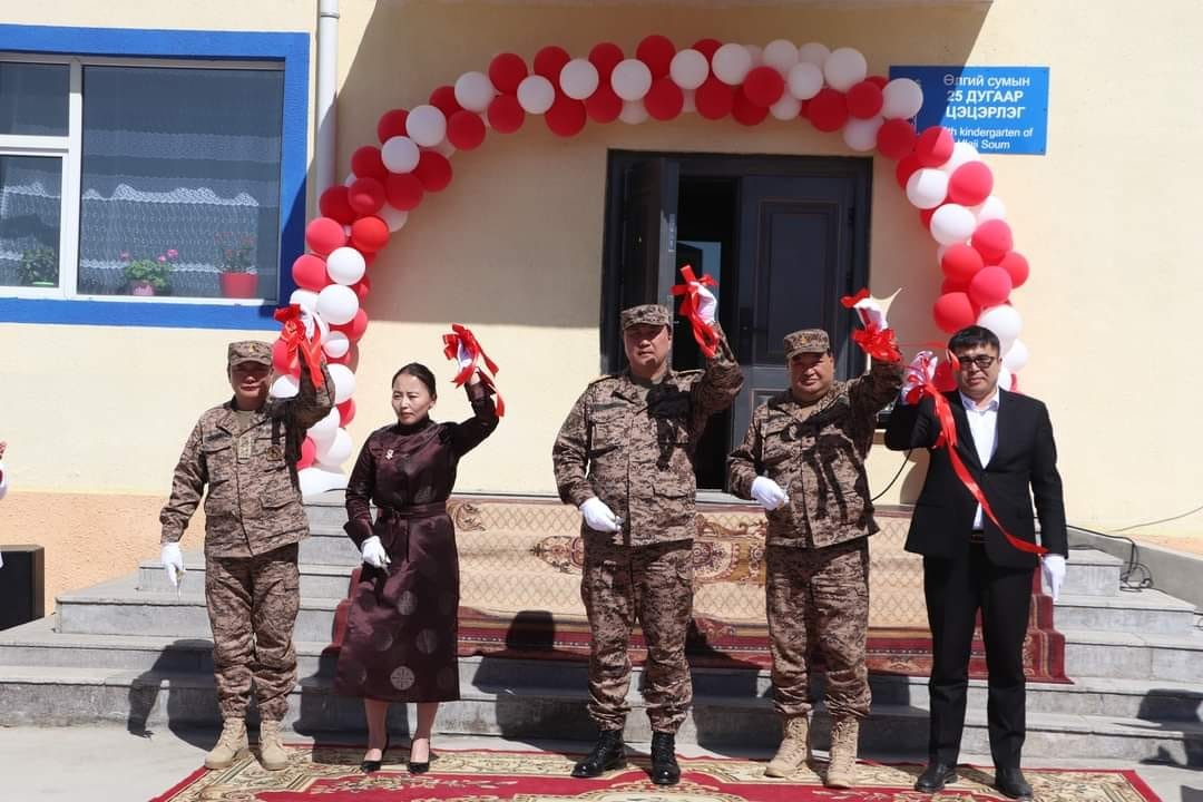 Үүний дараагаар Батлан хамгаалахын сайдаар ахлуулсан ажлын хэсэг тус аймагт үйл ажиллагаа явуулж буй Үндэсний аюулгүй байдлыг хангах тусгайлсан чиг үүрэг бүхий алба хаагчдын 150 хүүхдийн цэцэрлэгийн нээлтэд оролцсон юм. Тус цэцэрлэг нь Батлан хамгаалах яамны захиалгаар, улсын төсвийн хөрөнгө оруулалтаар Зэвсэгт хүчний 340 дүгээр анги барилга угсралтын ажлыг хийж гүйцэтгэж Улсын комисст хүлээлгэн өгчээ.