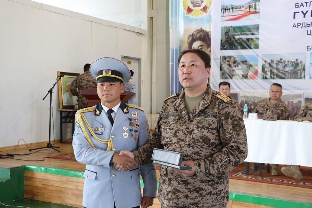 Мөн Батлан хамгаалахын сайд Г.Сайханбаяр тус анги салбарын бие бүрэлдэхүүнтэй уулзаж Засгийн газрын үйл ажиллагаа, салбарын эрх зүйн шинэчлэл, бодлогын хэрэгжилтийн хүрээнд хийгдэж буй ажлууд, алба хаагчдын харилцаа хандлага, ёс зүйн төлөвшил, манлайлал, нийгмийн хамгааллын талаар мэдээлэл өгч, албандаа итгэл үнэмшил дүүрэн, хичээл зүтгэл өндөр байхыг онцлон дурдсан юм. Түүнчлэн хөдөлмөр, зүтгэл, албандаа хандах хандлагаараа бусдадаа үлгэр жишээч зарим алба хаагчдыг салбарын шагналаар шагнаж, нутгийн удирдлагуудад Чингис хааны эш хөрөг, дурсгалын зүйлийг гардууллаа. Мөн тэдгээр анги, салбарын сургалт бэлтгэл, соёл хүмүүжлийн ажил, үйл ажиллагаанд зориулан 64 үйлдэлтэй ухаалаг дэлгэц, албан хэрэгцээнд ашиглагдах ачааны автомашиныг гардуулан өглөө.