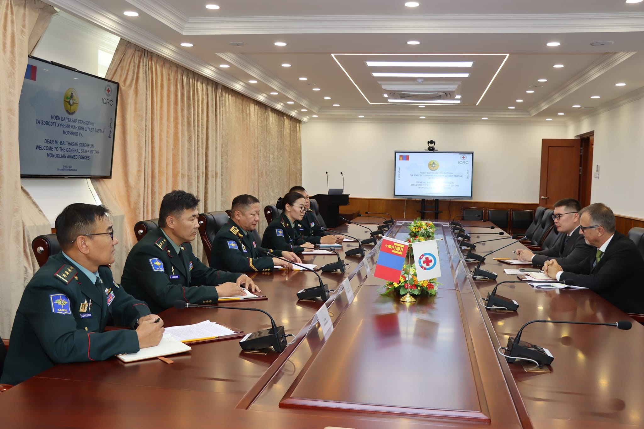 ЗХЖШ-ын дарга хошууч генерал С.Ганбямба Олон улсын улаан загалмай хороо (ОУУЗХ)-ны Ерөнхийлөгчийн БНХАУ дахь тусгай төлөөлөгч, Бээжин хот дахь Бүсийн төлөөлөгчийн газрын дарга ноён Балтаар Стаехэлинийг өнөөдөр (2024.07.29) хүлээн авч уулзлаа.