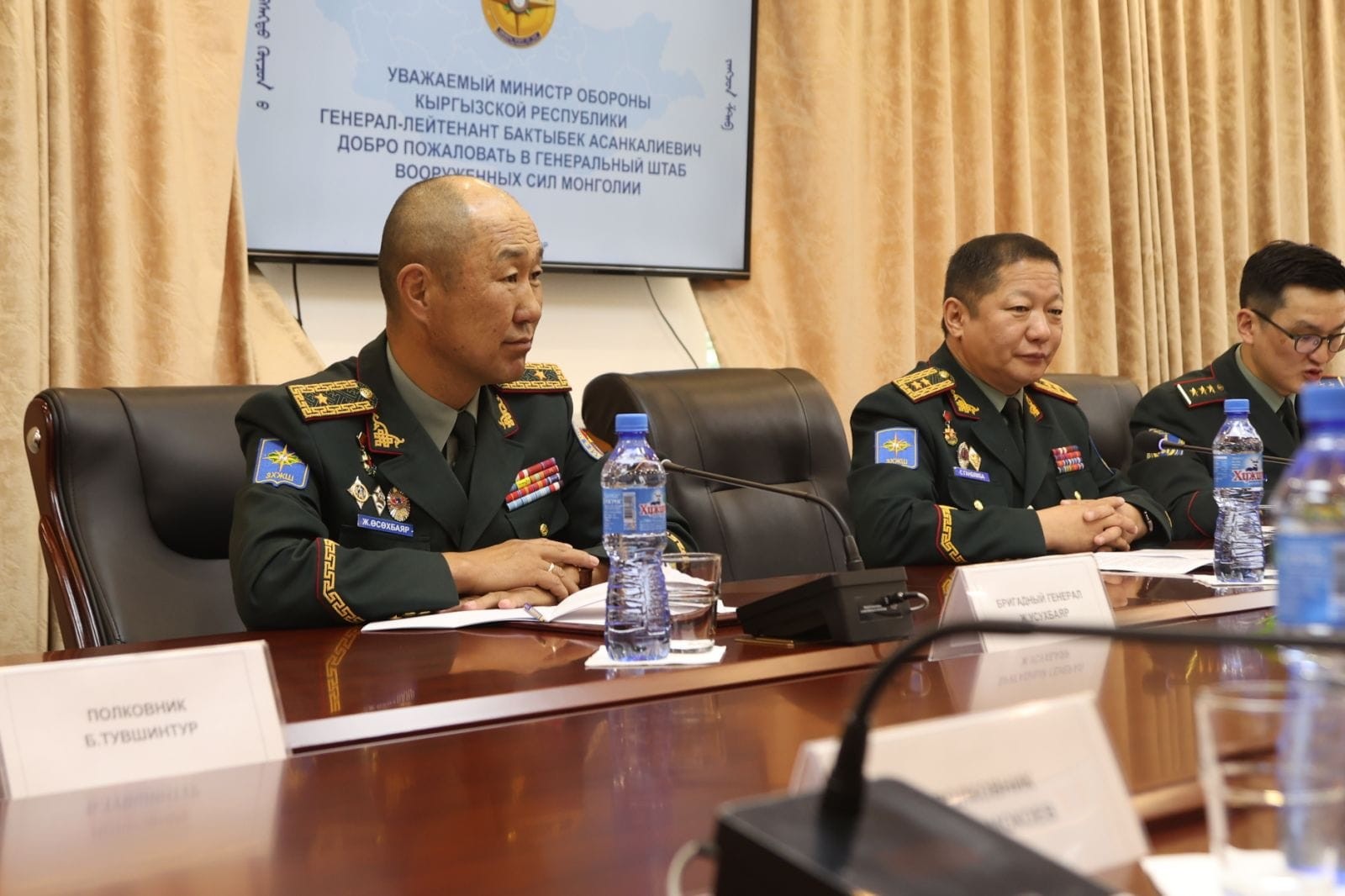 Мөн энэхүү уулзалтын үеэр Бүгд Найрамдах Киргиз Улсын Батлан хамгаалахын сайд дэслэгч генерал Б.А.Бекболотов тэргүүтэй төлөөлөгчдөд “Хааны эрэлд-2024” энхийг дэмжих ажиллагааны олон улсын сургуулийн талаарх мэдээллийг ЗХЖШ-ын Энхийг дэмжих, цэргийн хамтын ажиллагааны хэлтсийн дарга хурандаа Д.Мягмаржав танилцууллаа.