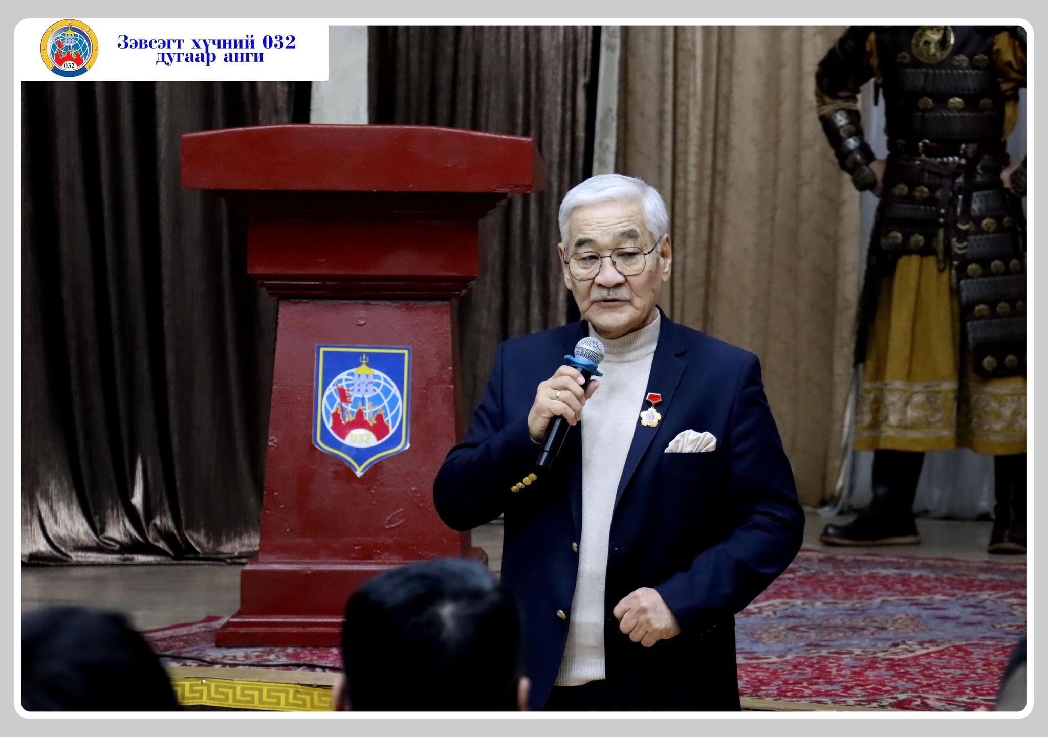 Зэвсэгт хүчний 032, 015 дугаар ангид энэ сарын 21, 23-ний өдрүүдэд “МОНГОЛ ЭР ХҮН-ЭР ЦЭРЭГ” төслийн хүрээнд Монгол улсын хөдөлмөрийн баатар, ардын жүжигчин П.Цэрэндагва, Д.Мэндбаяр нар монгол эр хүний эрхэмлэх ёс, монгол хүний амьралын онцлогийн талаар өөрийн үзэл бодол болон цэргийн алба хаахын сайхныг нийт бие бүрэлдэхүүнд сурталчилан таниулж цэргийн албаар бахархах, урам зоригийг нэмэгдүүлэх бахдам сайхан яриаг өрнүүллээ.
