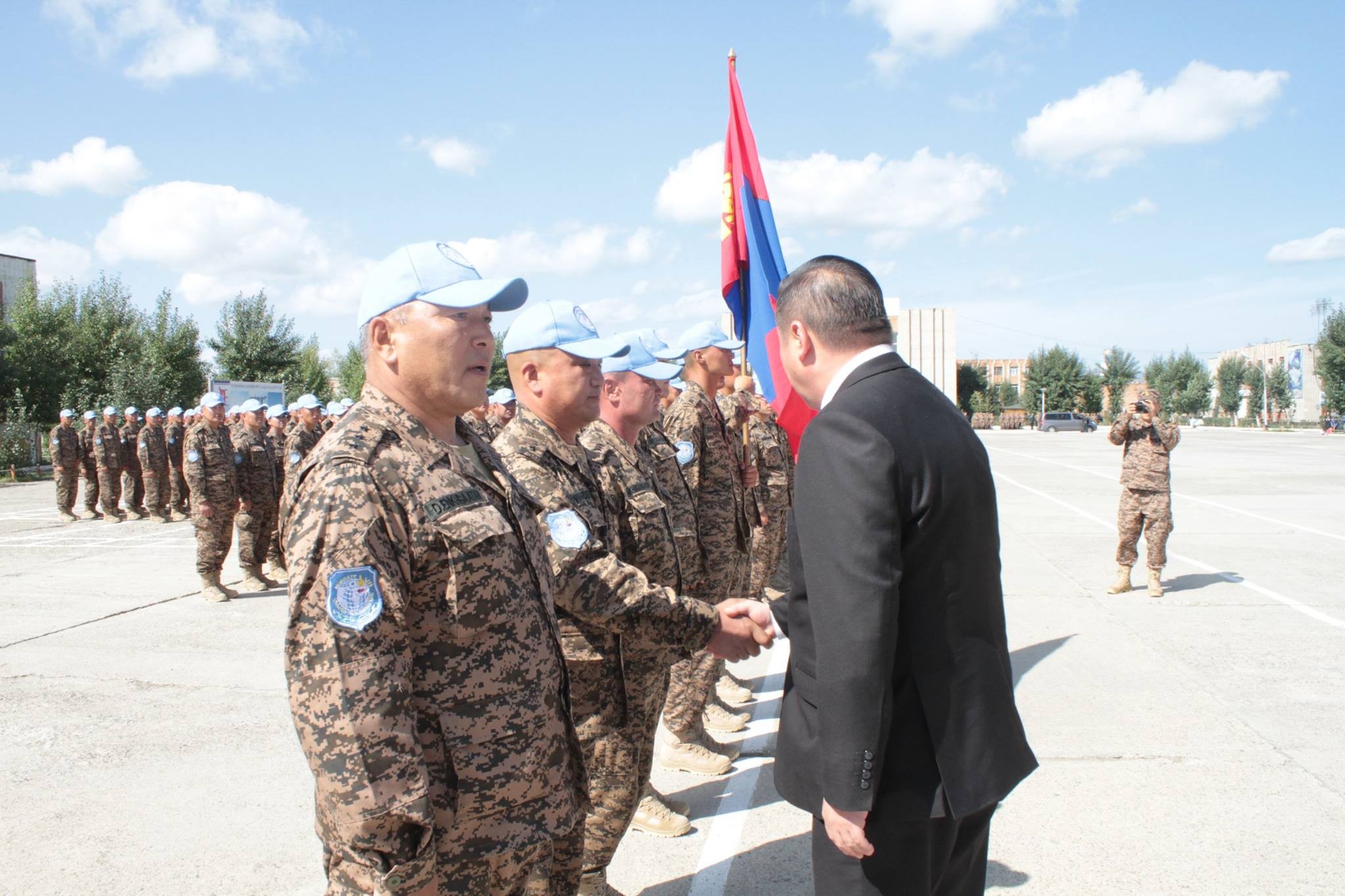 Бүгд Найрамдах Өмнөд Судан Улсад явагдаж буй НҮБ-ын мандаттай энхийг сахиулах "UNMISS" ажиллагаанд үүрэг гүйцэтгэх VII ээлжийн мотобуудлагын батальон, Бүгд Найрамдах Судан Улсын "Дарфур" мужид явагдаж буй "UNАMID" ажиллагаанд үүрэг гүйцэтгэх цэргийн хээрийн II шатны эмнэлгийн IX ээлжийн цэргийн багийн бие бүрэлдэхүүний Жанжин туганд хүндэтгэл үзүүлэх ёслолын ажиллагаа 2017 оны 08 дугаар сарын 28-ны 14.00 цагт Зэвсэгт хүчний 013 дугаар ангийн байрлалд зохион байгуулагдлаа.