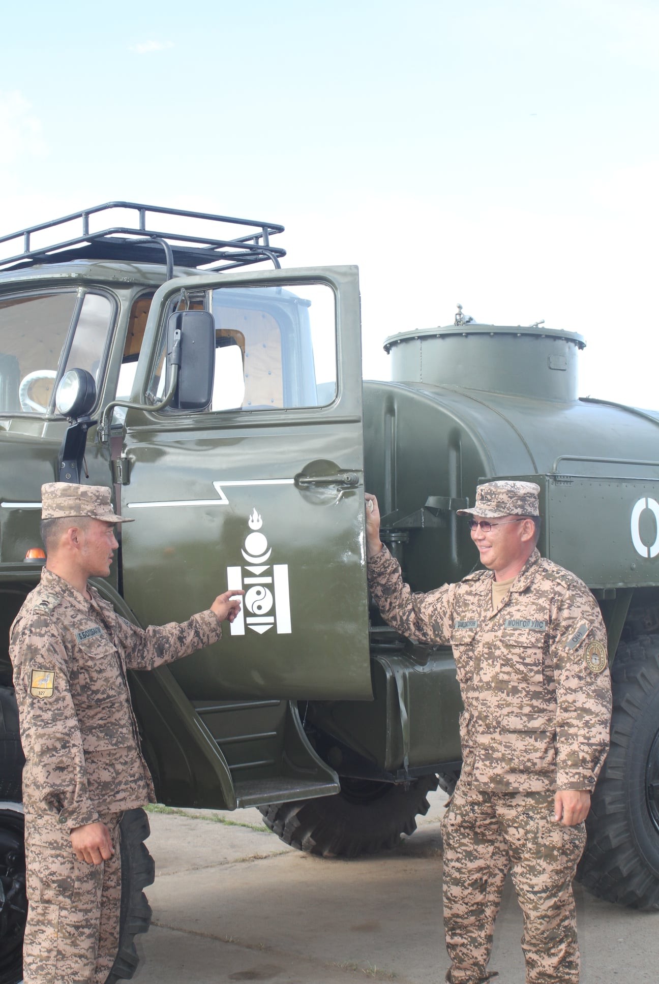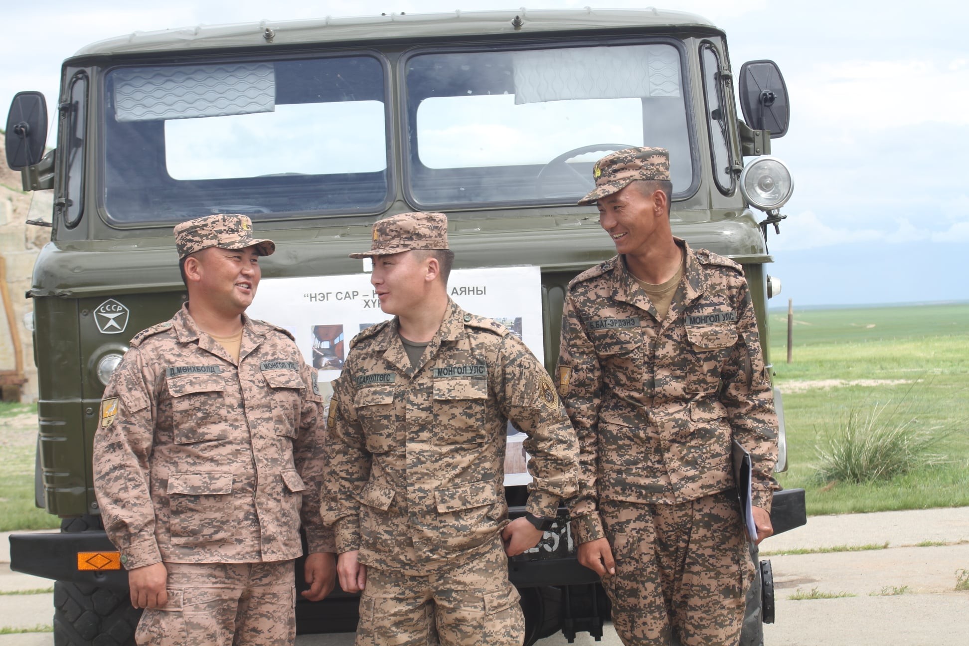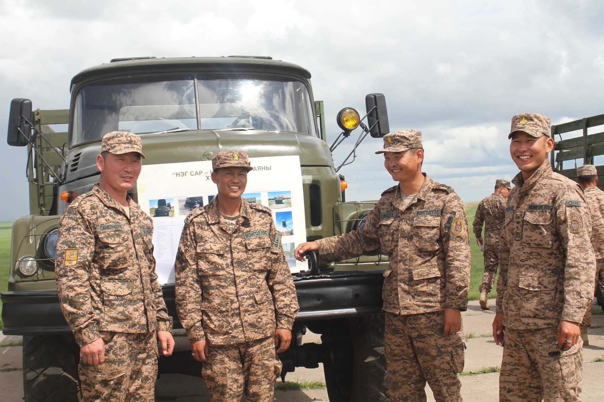 Тэднийг залгуулаад сургалтын албаныхан машиныхаа өмнө зогсож байна. Ахлах ахлах С.Батзориг “Манай албанд техникийн талын сүрхий мэдлэгтэй хүн байгаагүй ч хамт олныхоо дэмжлэгээр засварлаж чадсан. Манай машин доторлогооноосоо эхлээд цөм шинэчлэгдсэн. “Урал-375”-ын багаж хэрэгслүүд орон нутагт төдийлөн байдаггүй учир хот руу захиж авчруулсан. Манайх гэлтгүй бүх албад авчруулсан. Энэ аян цаг үеэ олсон маш чухал арга хэмжээ болж байна. Цэргийн техникийн бэлэн байдлыг хангахад хүн бүрийн оролцоог нэмэгдүүлж чадлаа” гэсэн юм.
