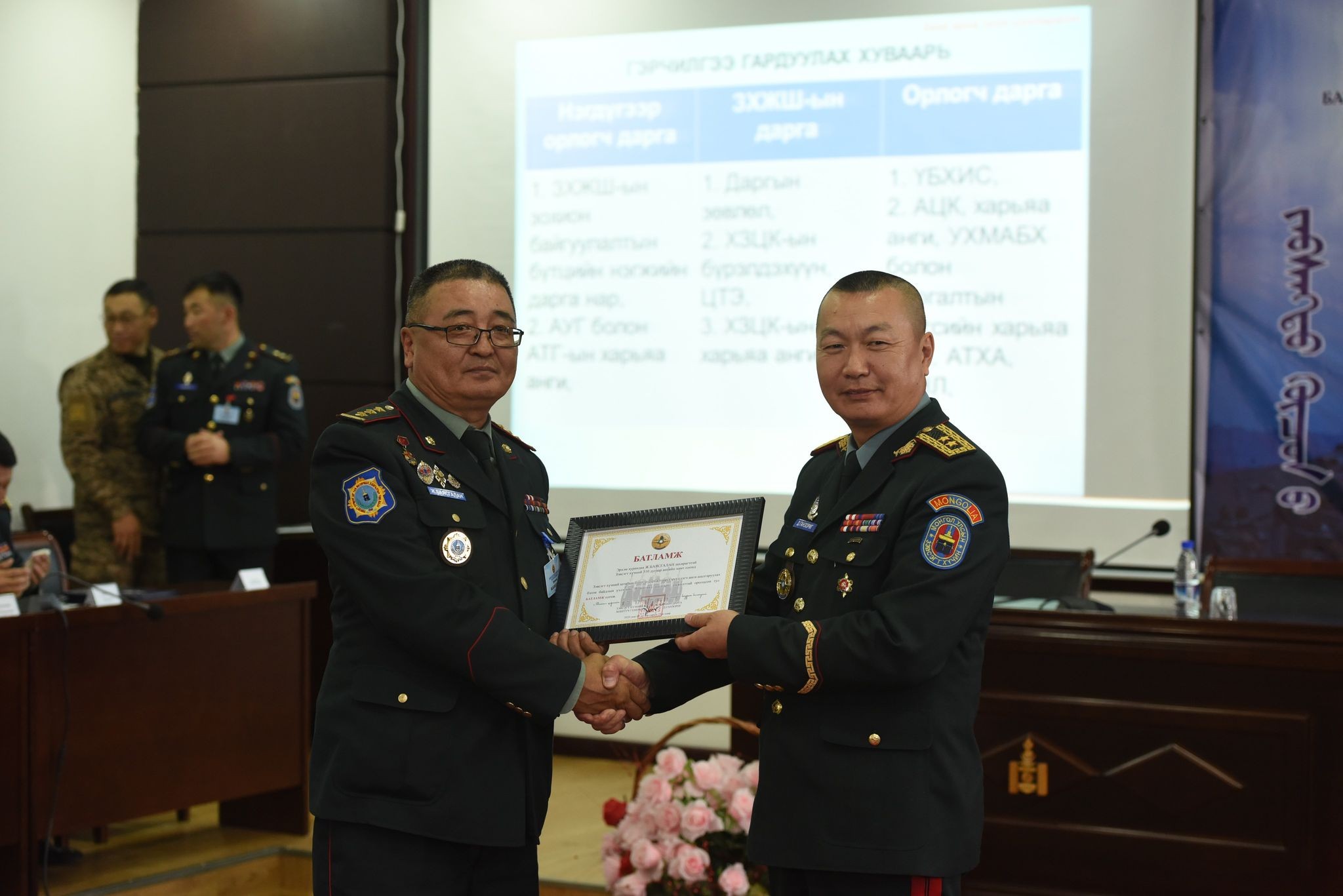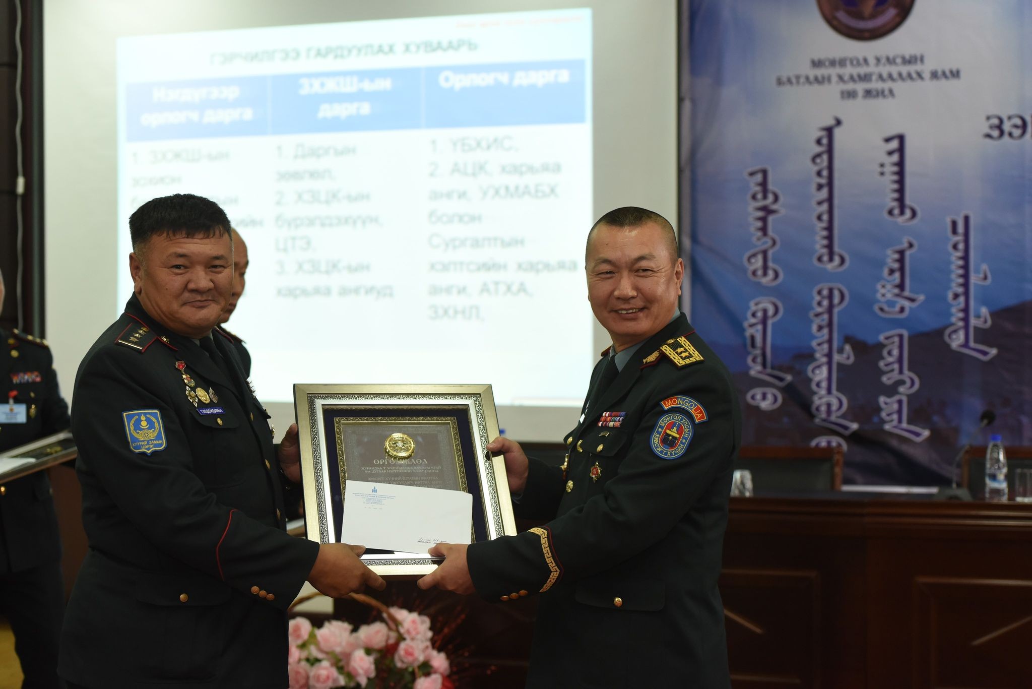 -ЗХЖШ-ын даргын “Штабын бэлтгэлжилт”-ээр тэргүүлэгч анги шалгаруулах бэлэн байдлын үзлэг явуулах тухай тушаал гарсан цагаас хойш бэлтгэсэн. Хүнээ бэлдсэн, объектоо ч бэлдсэн, бичиг баримтаа ч бэлтгэсэн. Удирдамжид заагдсан бүх шаардлагуудыг хангахад захирагчаасаа эхлээд байлдагч хүртлээ хичээж зүтгэсний үр дүн өнөөдөр тэргүүн байраар ирсэнд маш их баяртай байна. Хамт олныхоо өмнөөс баяртай байна. Бэлэн байдлын үзлэгт энэ олон шилдэг нэгтгэл, ангиудынхаа манлайд нь зогссон нь манай хамт олны гар нийлэмжтэй ажиллагаа чухал үүрэгтэй. Өргөмжлөлөө тэврээд ангийнхаа хамт олон дээр очно гэж бодоход сайхан санагдаж байна шүү. Манай ангийн хувьд сүүлийн үед өвөлжилтийн бэлтгэл ажил хангах хүрээнд цөөнгүй бүтээн байгуулалтын ажил өрнүүлж байна. Аймгийн хөрөнгө оруулалтаар ангийн штаб, цэргийн байр, албан тушаалын 11 айлын орон сууцандаа их засвар, шинэчлэл, тохижилт хийж байна. Мөн цэргийн гал тогоогоо боловсруулах танхимаар нь зааглан шинээр тохижуулж, эмнэлэгтээ тусгай зөвшөөрөл авах зорилгоор бүрэн хэмжээний засвар, шинэчлэл явуулж байна. Уурын зуухны тогоо, худгаа ч мөн сэлбэн засварлаж, зам талбай, гэрэлтүүлгээ шинэчилсэн. Түүнчлэн ангиа бүрэн хэмжээнд нь камержуулах ажлыг зохион байгуулж байна даа.