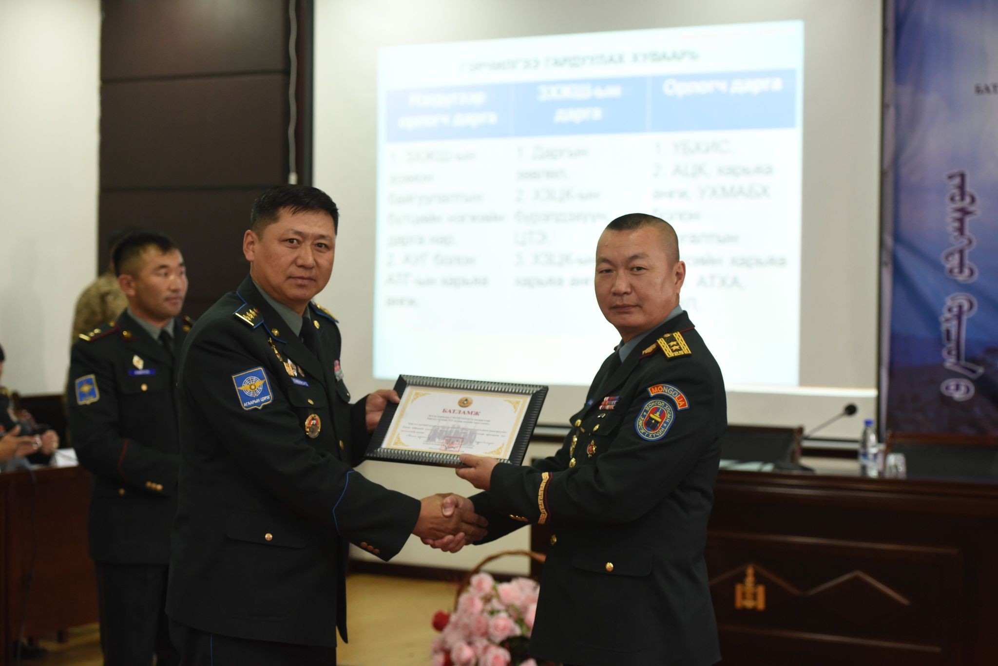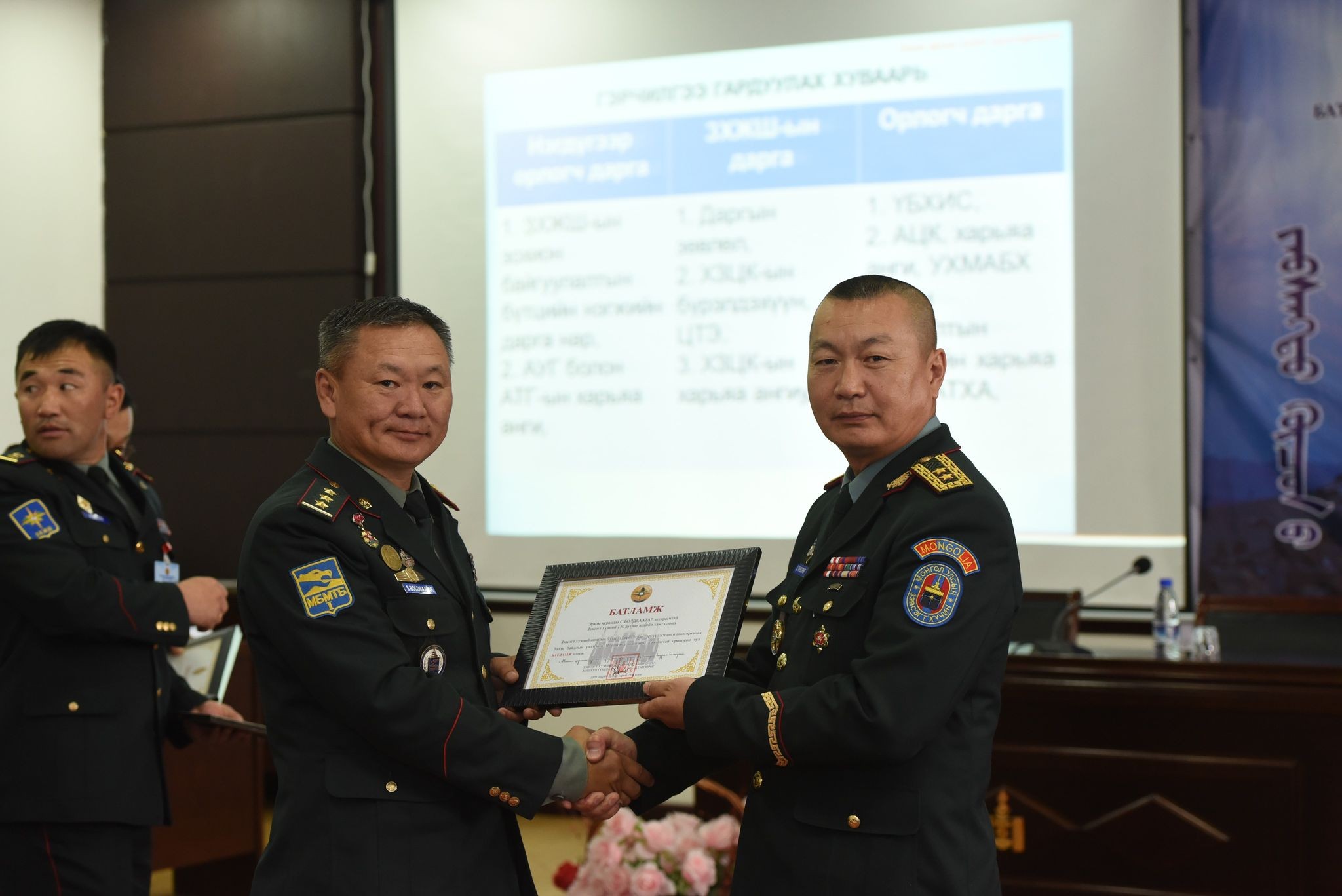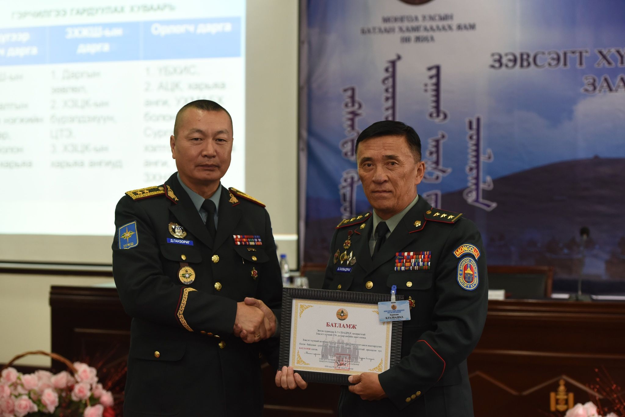-Штабын бэлтгэлжилт гэдэг нь бидний үндсэн хөдөлмөр юм. 2019-2020 оны сургуулийн жилийн хүрээнд штабын бэтгэлжилт, сургалт бэлтгэлээ сайжруулах, шинэ түвшинд хүргэх зорилго, зорилт тавиад ажилласны маань үр дүн өнөөдөр гарсанд маш их баяртай байна. Хамт олны маань хөдөлмөрч, бүтээлч санаачилга энэ хүндтэй шагналыг хүртэх гол хөшүүрэг байлаа. Зэвсэгт хүчний удирдах бүрэлдэхүүний заах арга зүйн цугларалтаар ЗХЖШ-ын дарга, Хуурай замын цэргийн командлагч нар шинэ сургуулийн жилд сургалт бэлтгэл, бэлэн байдал, цэргийн алба-сахилга, хариуцлагаа дээшлүүлэх талаар олон чухал үүрэг өглөө. Ирэх сургуулийн жилд бид бүхэн дадлага голлосон сургалт, бэлтгэлүүдийг түлхүү явуулна. Манай ангийн хувьд сүүлийн жилд зохион байгуулагдаагүй Дайчилгаатай команд штабын хээрийн сургуулийг амжилттай явуулсандаа баяртай байгаа.