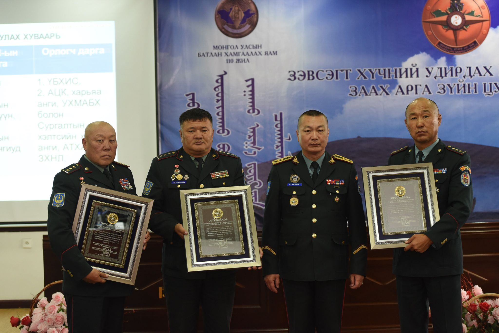 Зэвсэгт хүчний удирдах бүрэлдэхүүний заах арга зүйн цугларалтын төгсгөлд ЗХЖШ-ын дарга, хошууч генерал Д.Ганзориг ЗХЖШ-аас зохион байгуулсан “Штабын бэлтгэл сургалтаар тэргүүлэгч анги” шалгаруулах бэлэн байдлын үзлэгт тэргүүлсэн нэгтгэл, ангиудад шагналыг гардуулан өгч, баяр хүргэлээ. Бэлэн байдлын үзлэг хоёр үе шаттай явагдсан бөгөөд эхний шатанд комиссын бүрэлдэхүүн Зэвсэгт хүчний бүх нэгтгэл, ангиудад ажиллаж, удирдлагын байгууллага, холбооны систем, удирдлагын байруудын бэлэн байдал, үүрэг гүйцэтгэх чадавхыг нэг бүрчлэн үнэлж үнэлэлт дүгнэлт өгсөн бол хоёрдугаар шатны шалгаруулалтыг нэгдүгээр шатнаас шалгарсан Зэвсэгт хүчний 016 дугаар нэгтгэл, Зэвсэгт хүчний 014, 150, 167, 186, 256, 310, 325 ангиудын хамтарсан Команд штабын сургуулийг зохион байгуулсан юм. Хоёр шатны нийлбэр дүнгээр "Штабын бэлтгэлжилт"-ээр тэргүүн байрт хурандаа Ж.Өсөхбаяр захирагчтай Зэвсэгт хүчний 167 дугаар анги шалгарч, дэд байрт хурандаа Т.Лодойдамба захирагчтай Зэвсэгт хүчний 016 дугаар нэгтгэл, гутгаар байрт хурандаа Д.Жигжидсүрэн захирагчтай Зэвсэгт хүчний 186 дугаар анги шалгарсан юм. Тусгай байрт Зэвсэгт хүчний 256, 150 дугаар ангиуд буухиалсан амжилт үзүүлсэн юм. ЗХЖШ-ын дарга, хошууч генерал Д.Ганзориг "Штабын бэлтгэлжилт, бэлэн байдал гэдэг та бидний үндсэн үүрэг, заавал гүйцэтгэх ёстой ажил. Энэ удаагийн уралдаан энэ үүргээ дээшлүүлэх, шинэ шатанд хүргэх гараа гэж ойлгоорой" гээд шагналт байруудад шалгарсан нэгтгэл, ангиудад өргөмжлөл гардуулж, хоёрдугаар шатанд шалгарсан ангиудад батламж гардуулан баяр хүргэж, амжилт хүссэн юм.