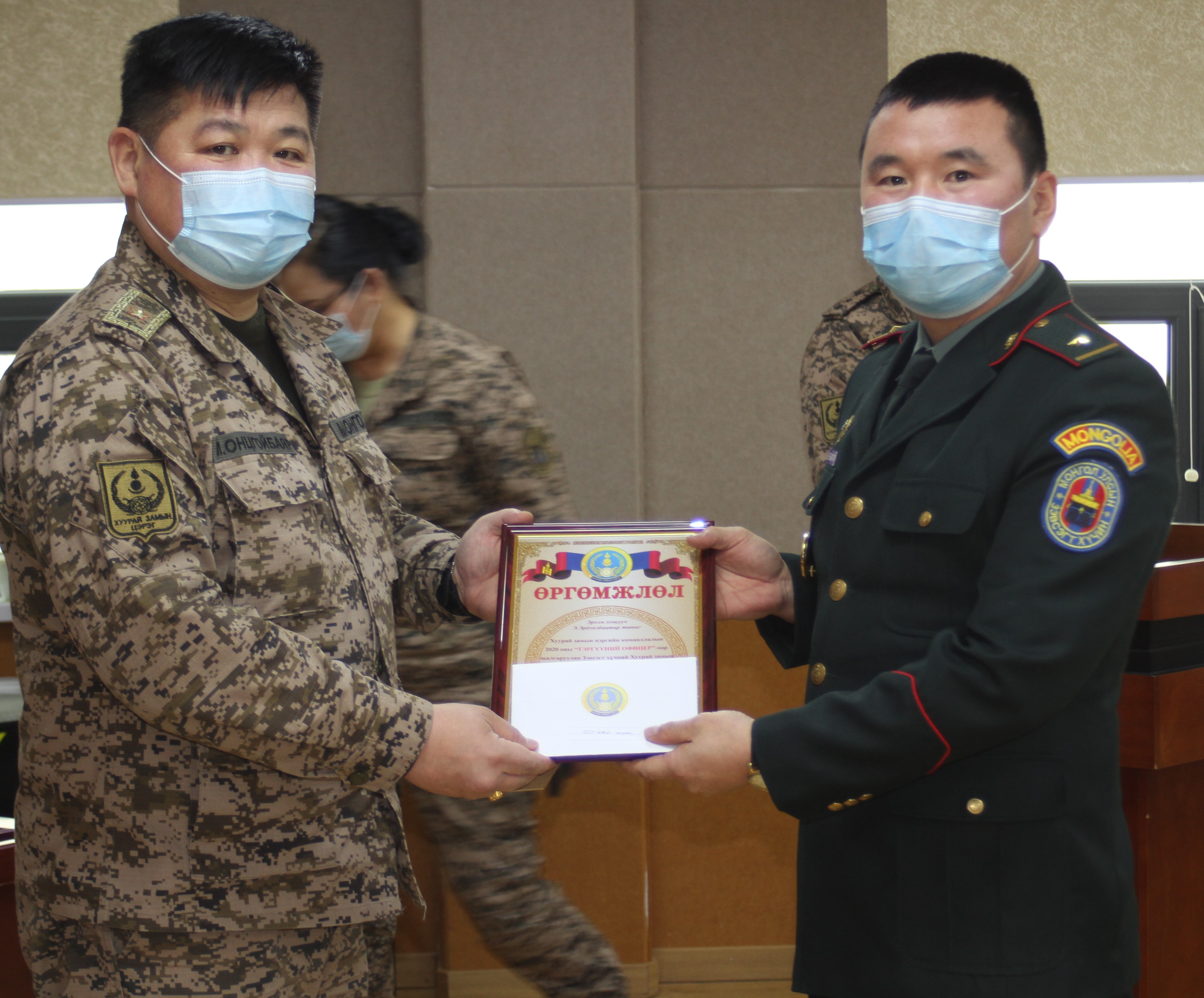 Хуурай замын цэргийн командлалын “Тэргүүний офицер”-оор тэргүүн байрт Цэргийг агаарын довтолгооноос хамгаалахын дарга, хурандаа Б.Эрдэнэпил, дэд байрт Хүний нөөцийн хэлтсийн нөхөн хангалтын офицер, хошууч Э.Эрдэнэбаатар, гутгаар байрт Материал, техникийн хэлтсийн хангалтын офицер, ахмад Г.Эрдэнэсүх нар шалгарлаа.