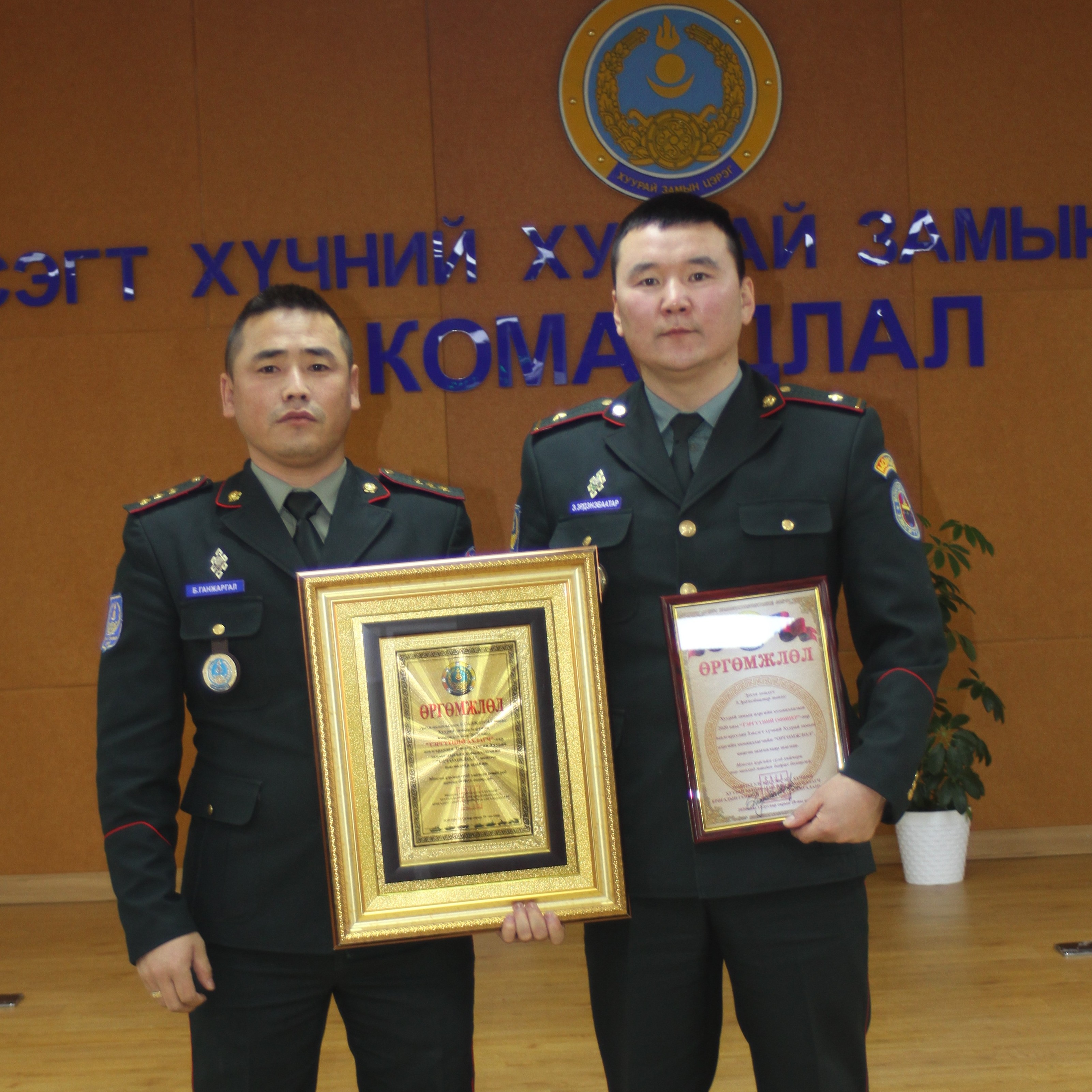 Тус командлалын “Тэргүүний ахлагч”-аар тэргүүн байрт Хүний нөөцийн хэлтсийн хэрэг хөтлөгч, ахлах ахлагч Б.Ганжаргал, дэд байрт Захиргааны удирдлагын хэлтсийн архивын эрхлэгч, сургагч ахлагч Ш.Олдохбаяр нар, “Тэргүүний ажилтан албан хаагч”-аар тэргүүн байрт Хангалт үйлчилгээний тасгийн сантехникийн слесарь Х.Баярбаатар, дэд байрт Захиргааны удирдлагын хэлтсийн бичээч-оператор Ц.Нарантуяа нар шалгарсныг Хуурай замын цэргийн командлагч, бригадын генерал Б.Амгаланбаатар нарын удирдлагууд гардуулан өгч, баяр хүргэсэн юм.