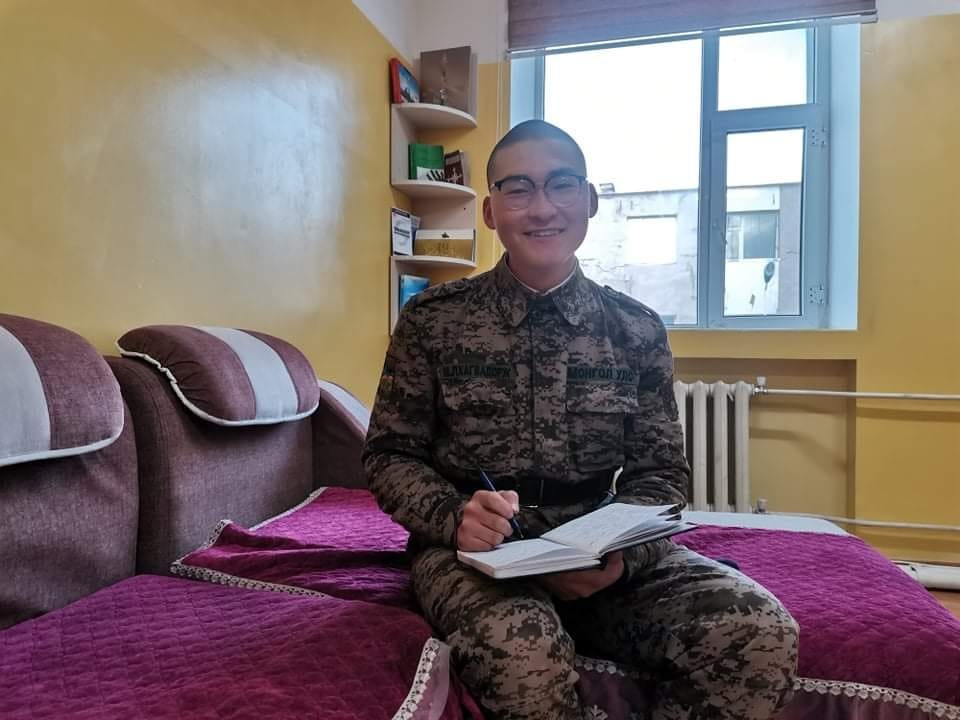 Цэргийн алба дасахад хатуу ч дассан хойно зөөлнөөс зөөлөн юм. Сайхан нөхөдтэйгөө түшилцэж туулдаг ганцхан жилийг одоо ингээд бодоход богинохон байна. Учир нь миний хажууд цэргийн нөхөд маань байна. Тийм болохоор аав, ээж минь хүүдээ битгий санаа зовоорой. Хүү нь албаа нэр төртэй хаагаад мөдхөн очно оо. Сайн сууж байгаарай. Хайртай хүүгээс нь” гэжээ.