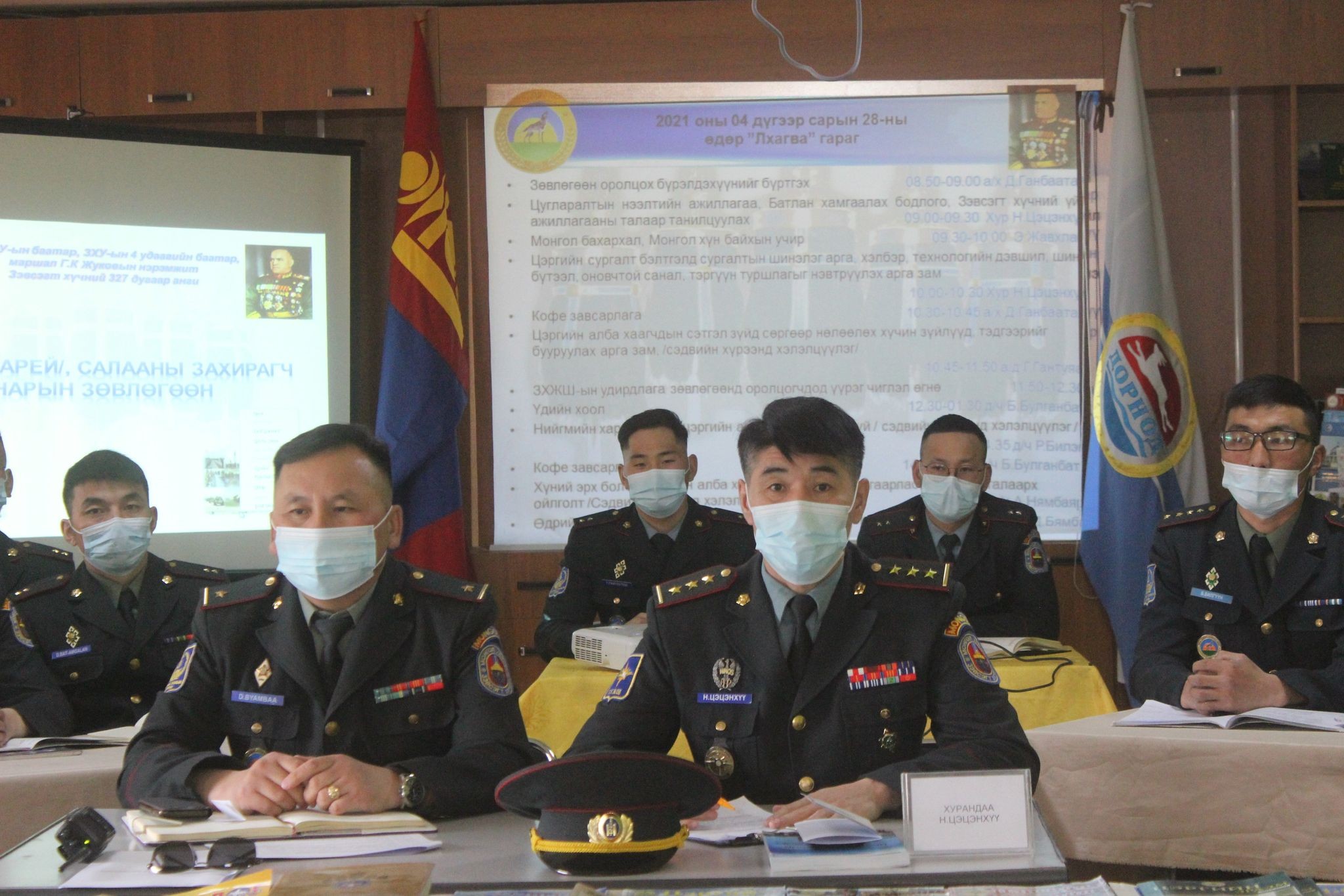 Зөвлөгөөнд оролцогчдод хандаж ангийн захирагч, хурандаа Н.Цэцэнхүү “Залуу офицерууд та бүхэн сурч мэдэхийн хүсэл тэмүүллээр дүүрэн байх ёстой. Энэ мэддэг, чаддаг зүйл гэж тоомжиргүй хандаж огт болохгүй. Ялангуяа, цэргийн албанд. Та нэгэнт цэргийн хүн болохоор шийдсэн бол тэргүүлэгч нь байхын төлөө хичээж, өөрийгөө дайчилж, харилцаа, хандлагаараа зөв байх хэрэгтэй” гээд цэргийн албаны нэр хүндийг өндөрт өргөхийг захилаа.